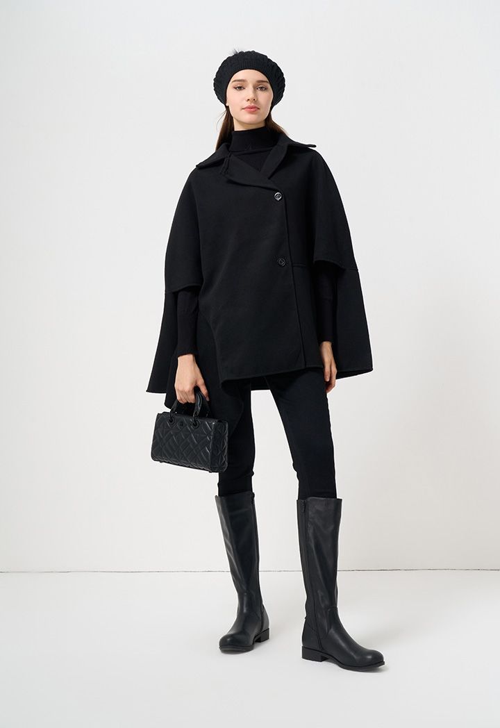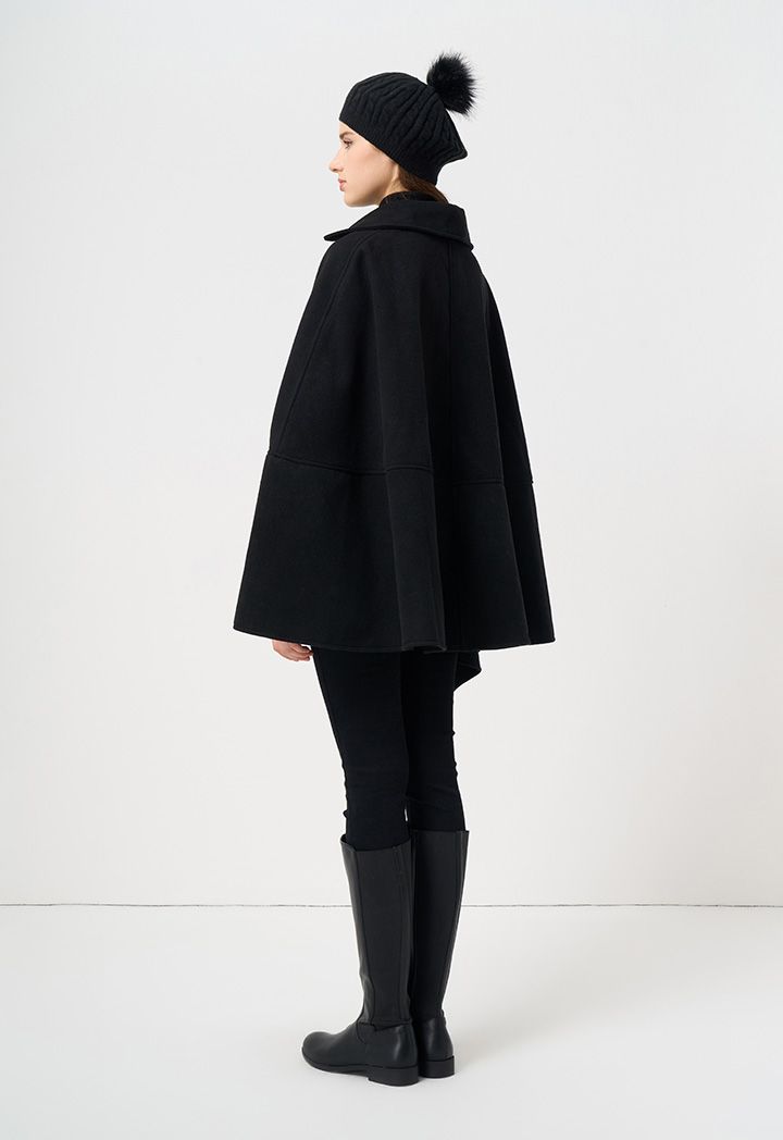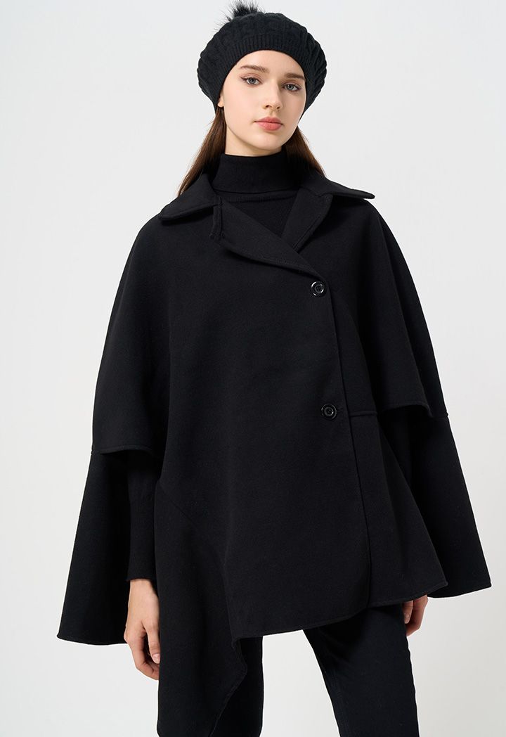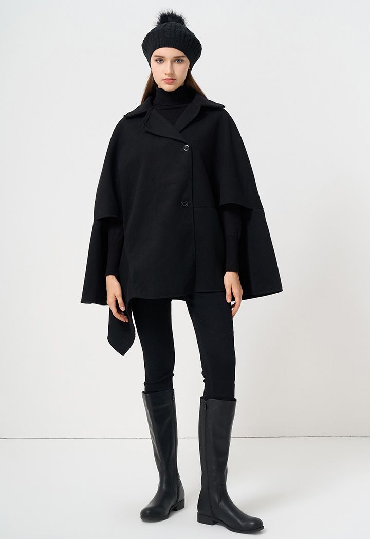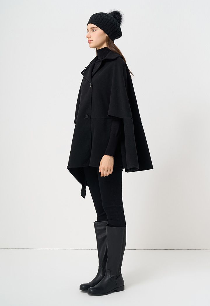 A classic design of a winter poncho that is inspired by the trench coat for a timeless piece.