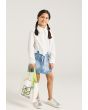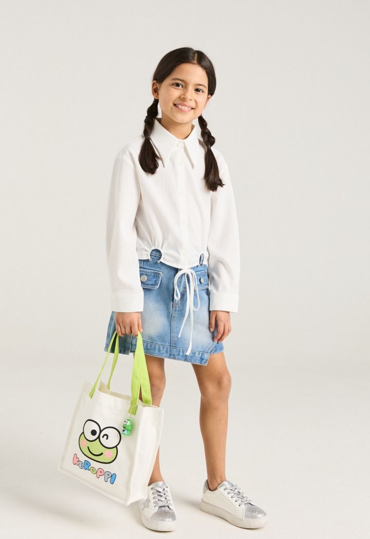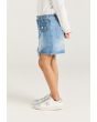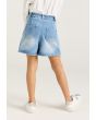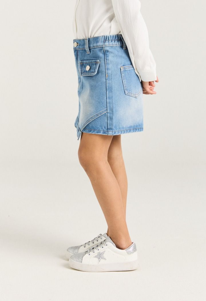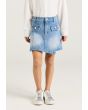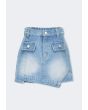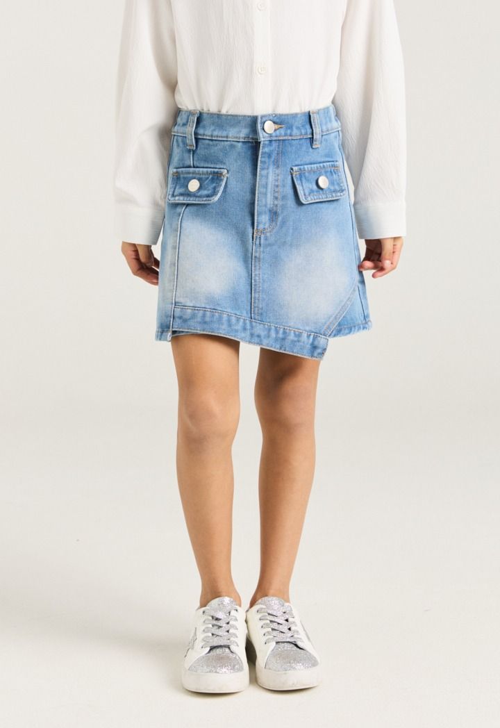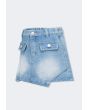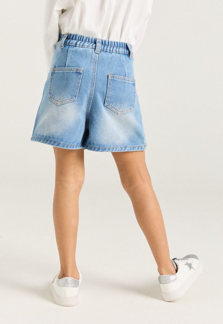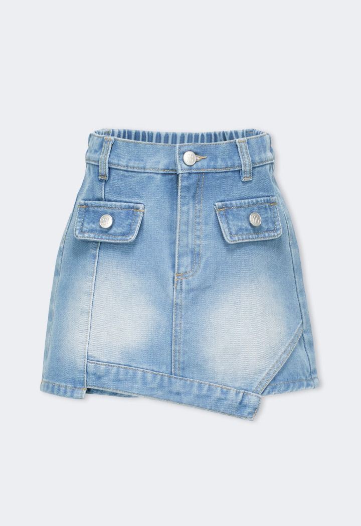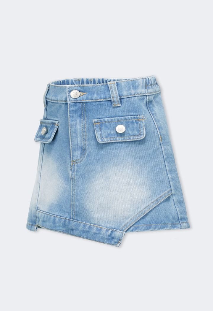 Denim shorts with an extra layer for a skirt-like look, offering a stylish and trendy touch