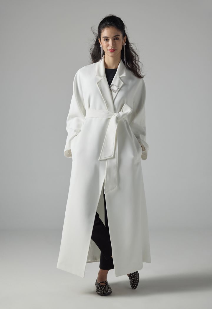 Design: Solid, Pleated, Self Fabric Belt, Oversized