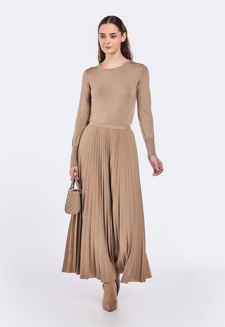 Elevate your style with this stunning skirt. The versatile piece embodies timeless elegance, featuring delicate pleated details that add a touch of sophistication to any outfit.