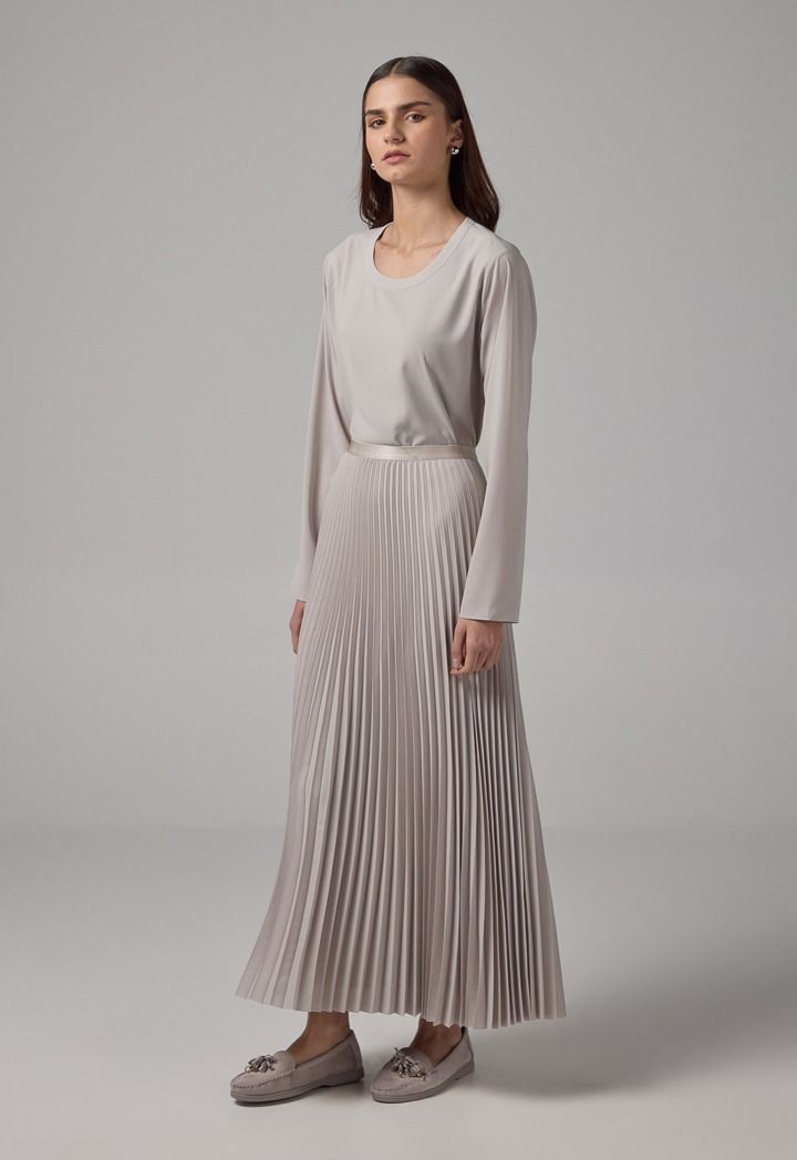 This elegant maxi skirt with pleats adds a touch of sophistication to your wardrobe perfect for any casual or formal event.