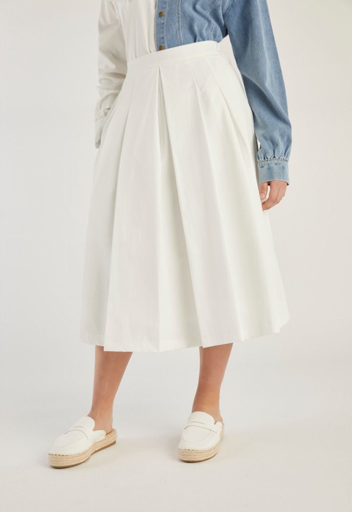 Put this skirt on, featuring a solid yet pleated design that is both classic and stylish.
