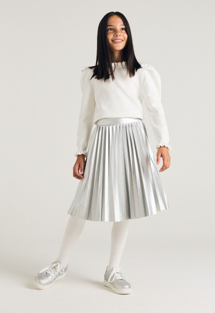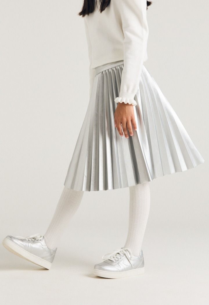 Put this skirt on, featuring a solid yet pleated design that is both classic and stylish.
