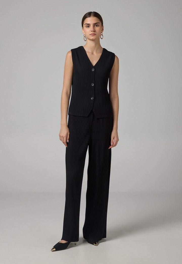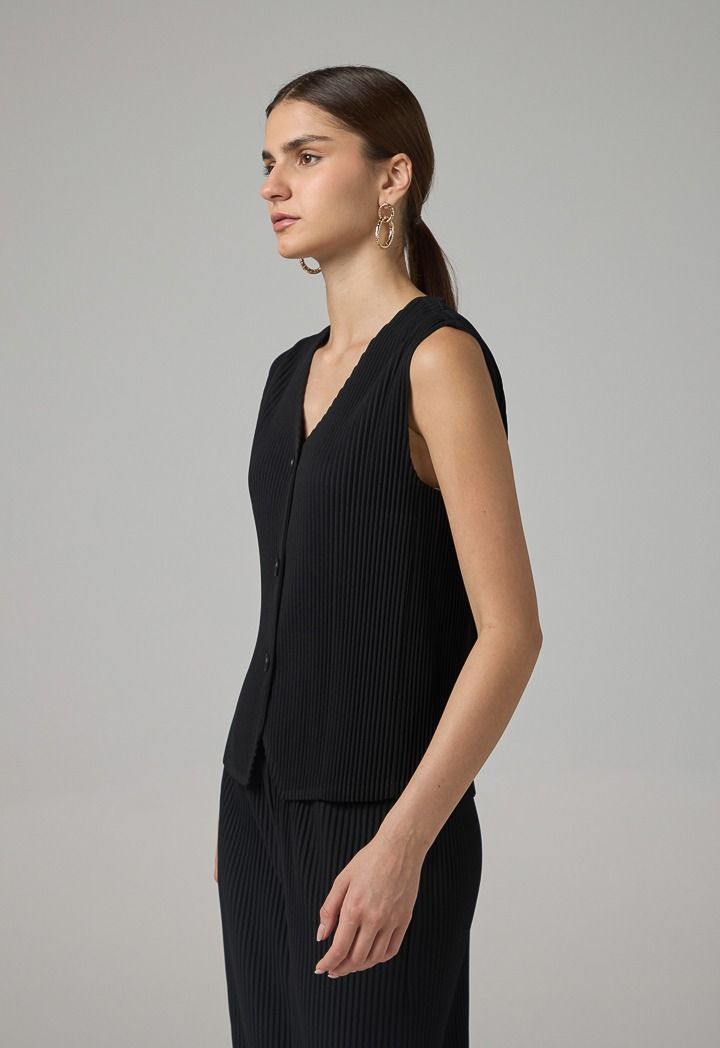 Add more Modern pieces to your collection by pairing this Gilet. It is designed with a V-Neck and Pleated design that add to its appeal.