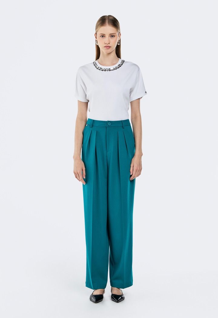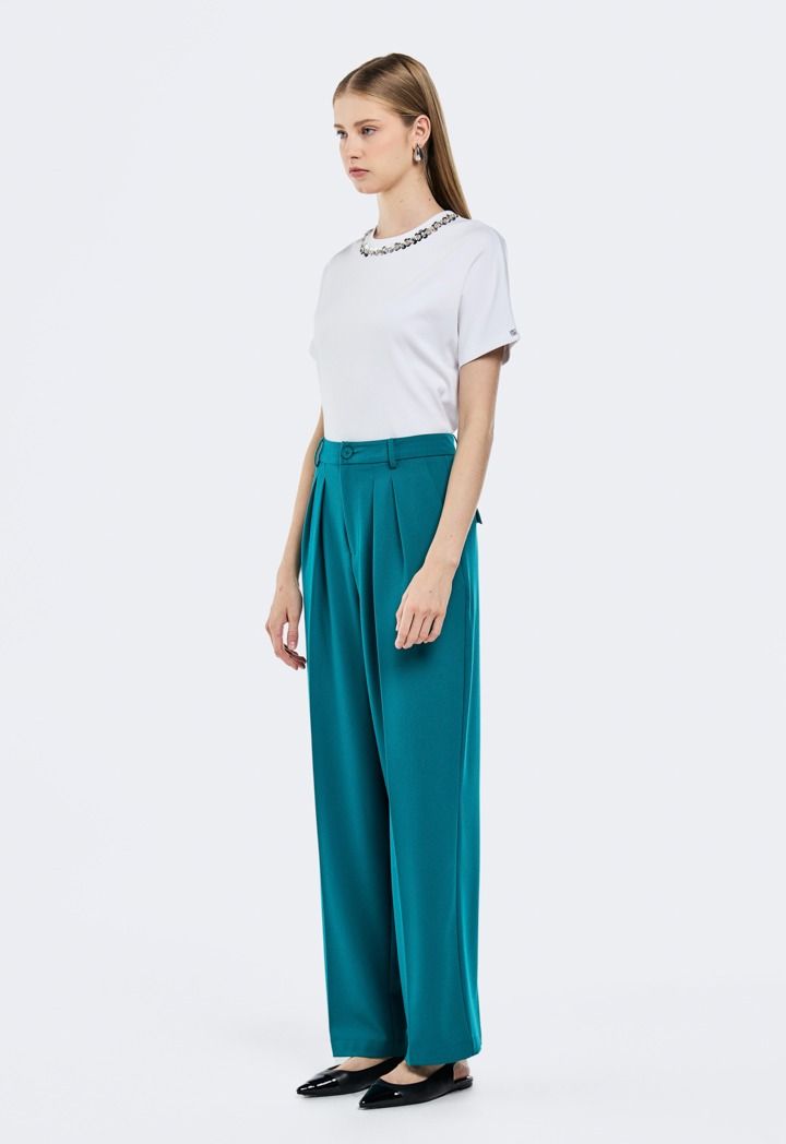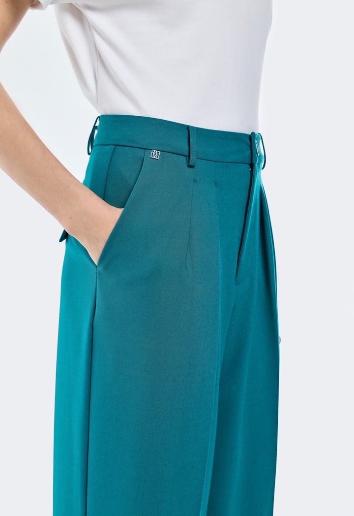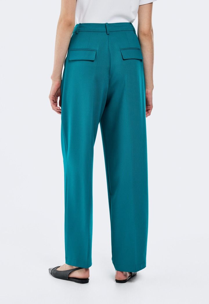 Design: Solid, Side Pockets, Pleated Waist, Straight Cut, High Waist