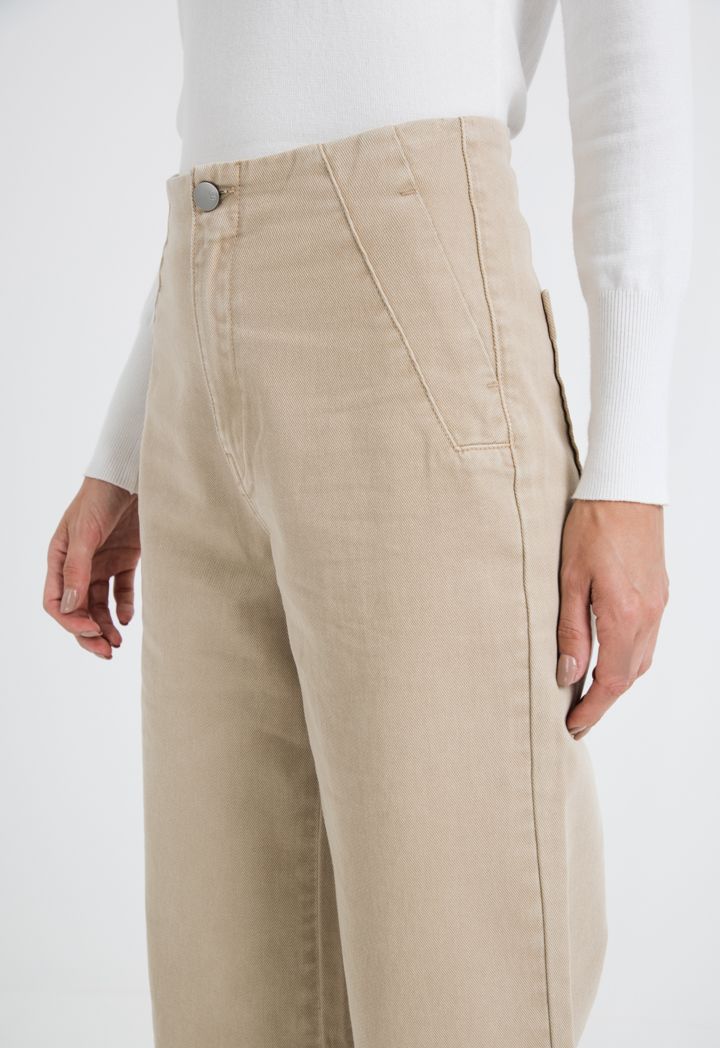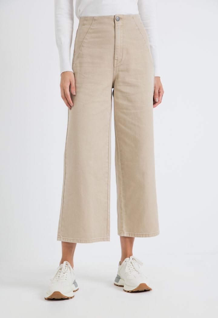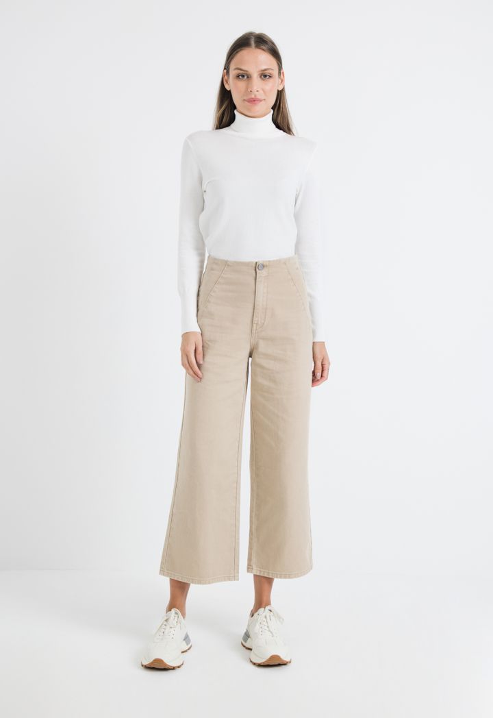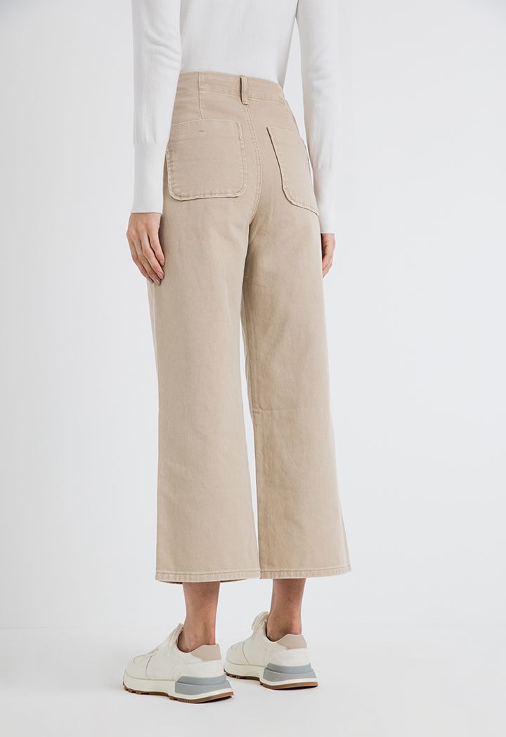 Add these uber-cool wide leg pants to your collection and jazz up your closet in an instant. Featuring button closure at waist, these mid-rise pants are sure to enhance your style quotient while delivering optimal comfort.