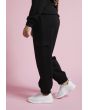 A comfortable pair of sweatpants that features a solid design and an elastic hems .
