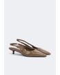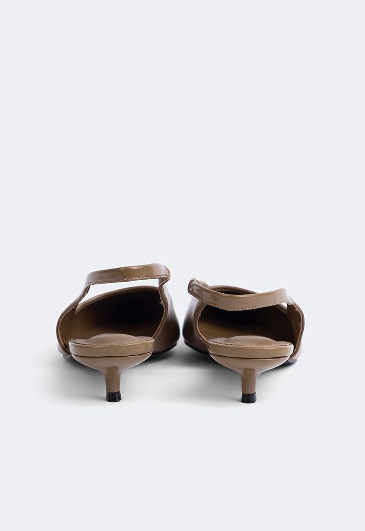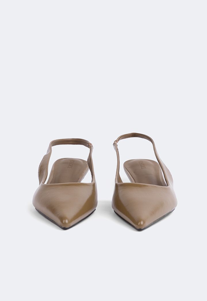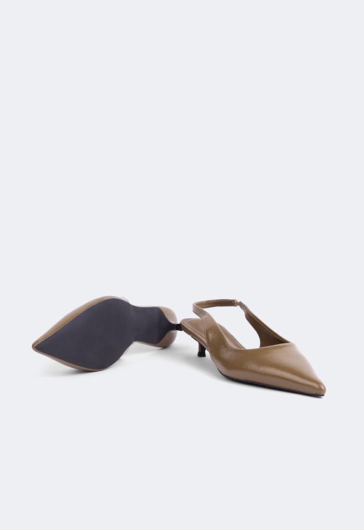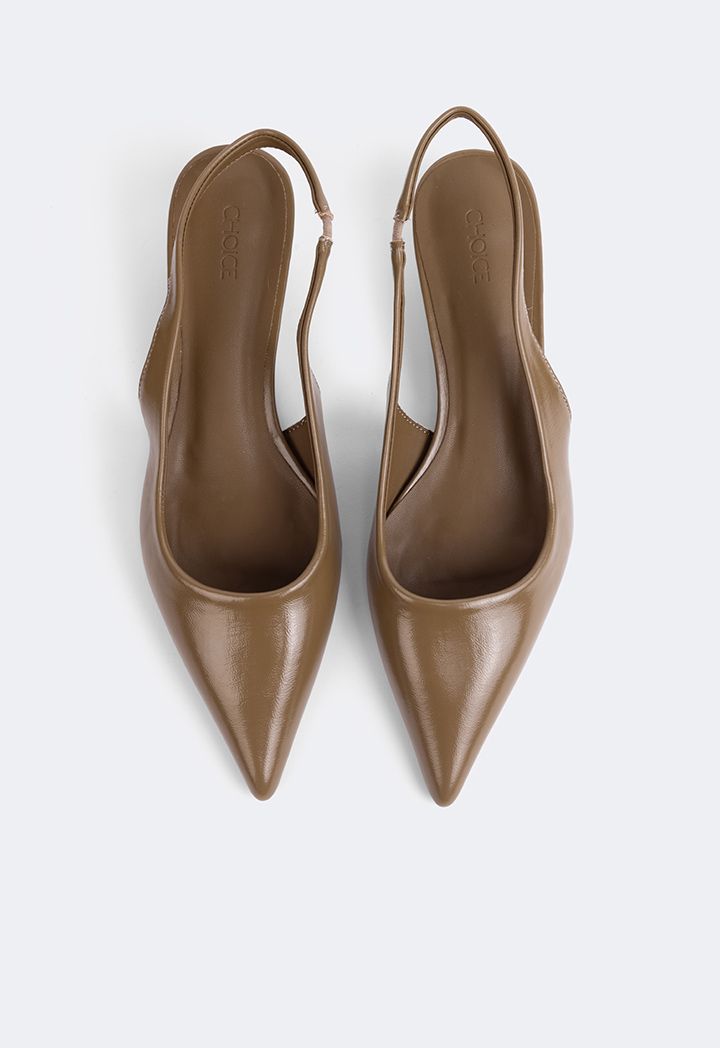 A pair of modern heels that features a solid pointed toe and a sling back for that anti-slip effect.