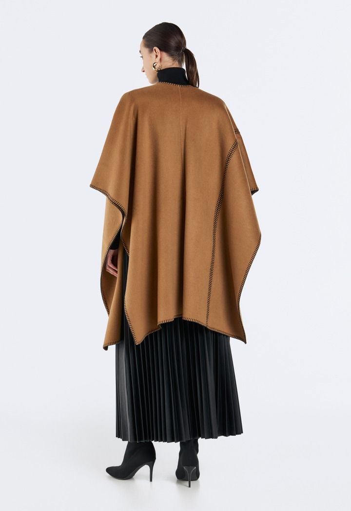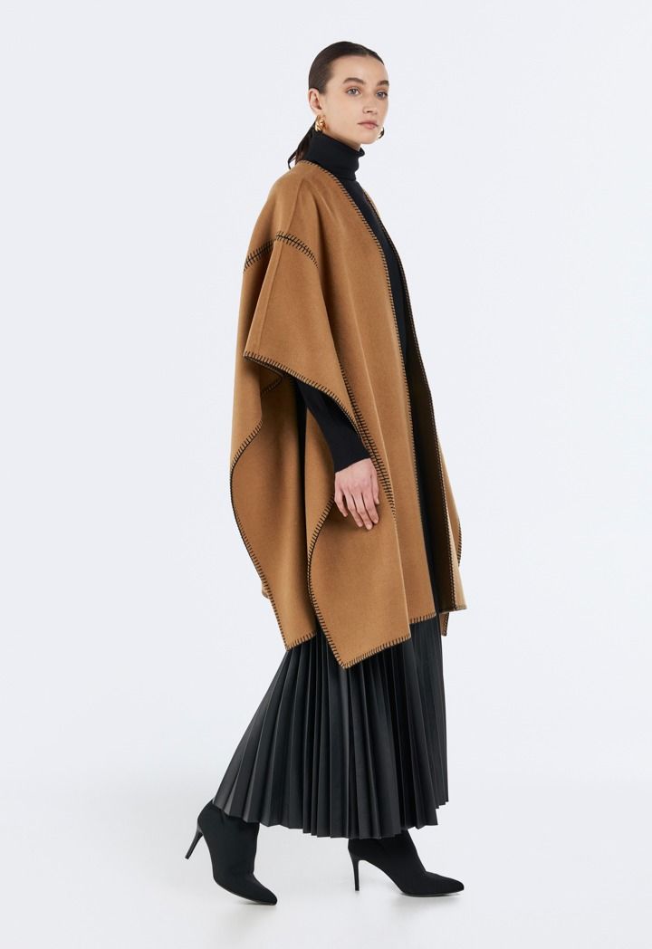 A cozy poncho featuring decorative stitch detailing that adds texture and charm.