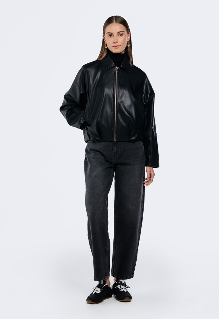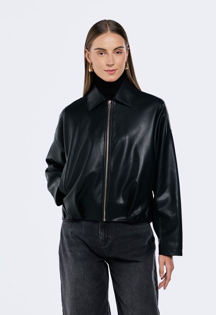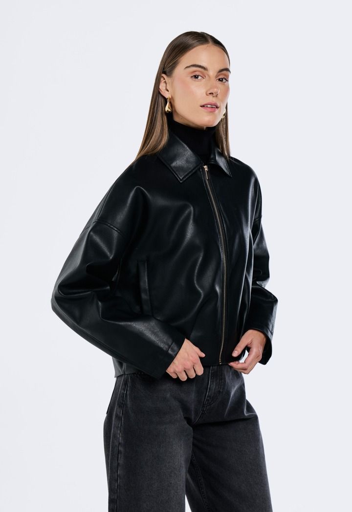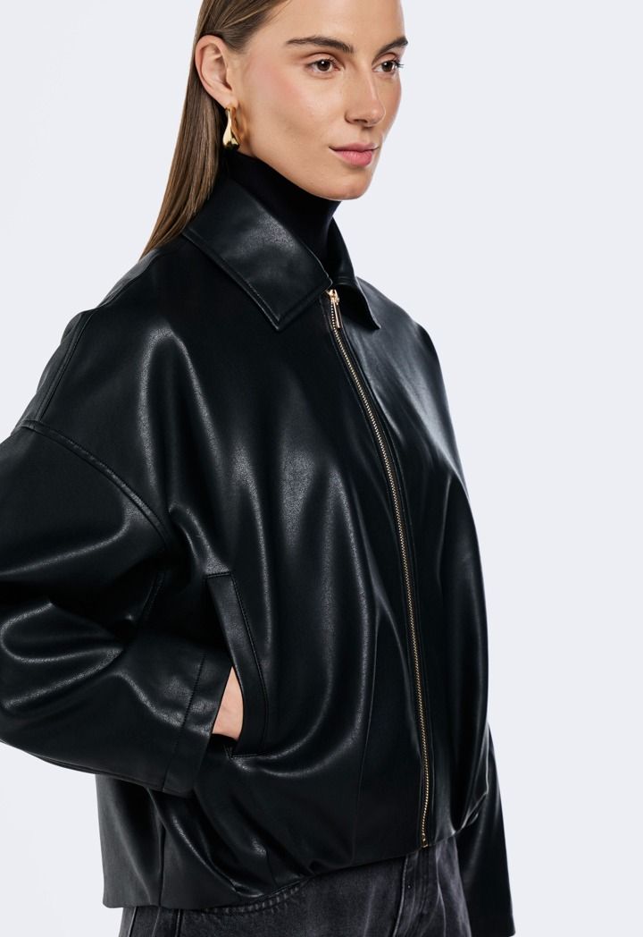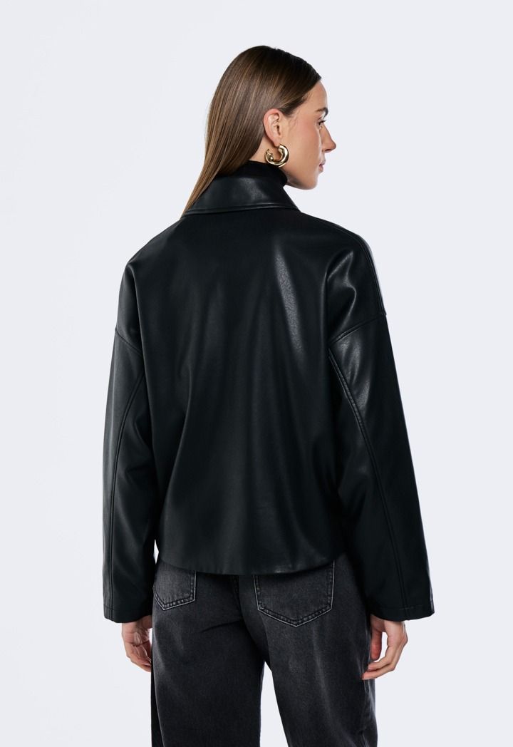 Design: Solid, PU Leather, Side Pockets, Attached Lining, Drop Shoulders
