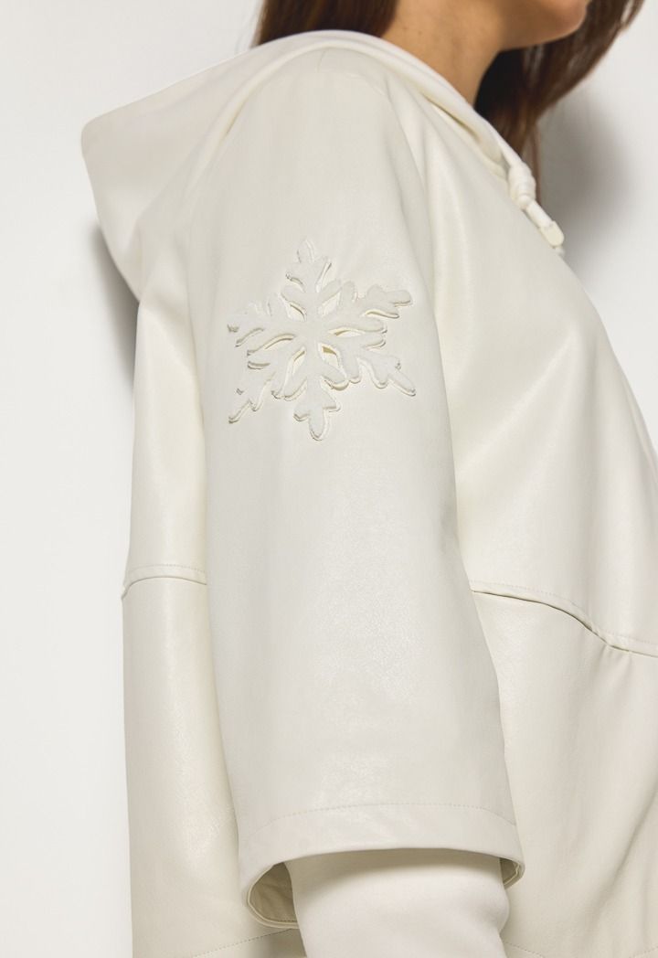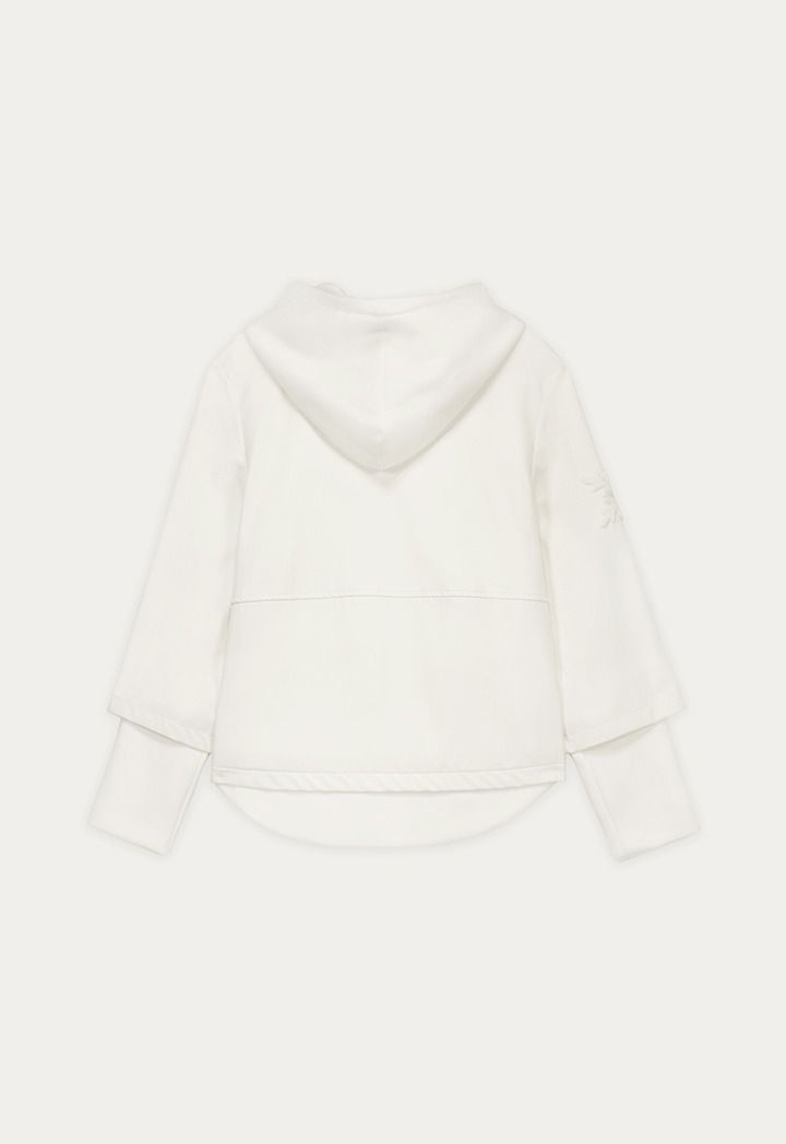This next-level multi-fabric jacket with a hoodie is a sporty yet chic piece for your wardrobe.