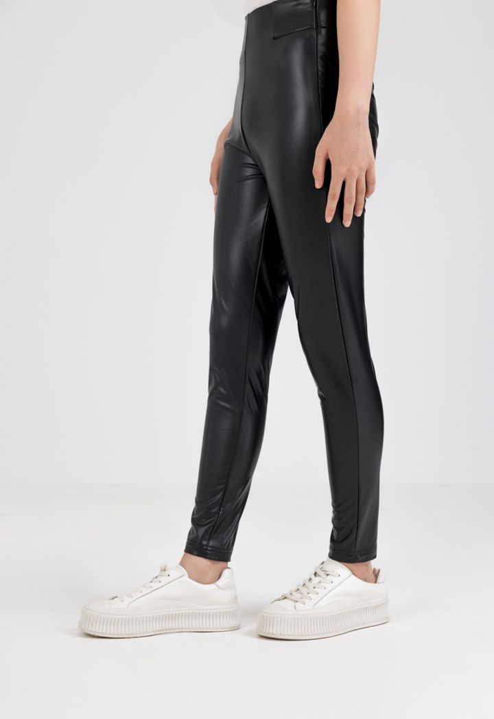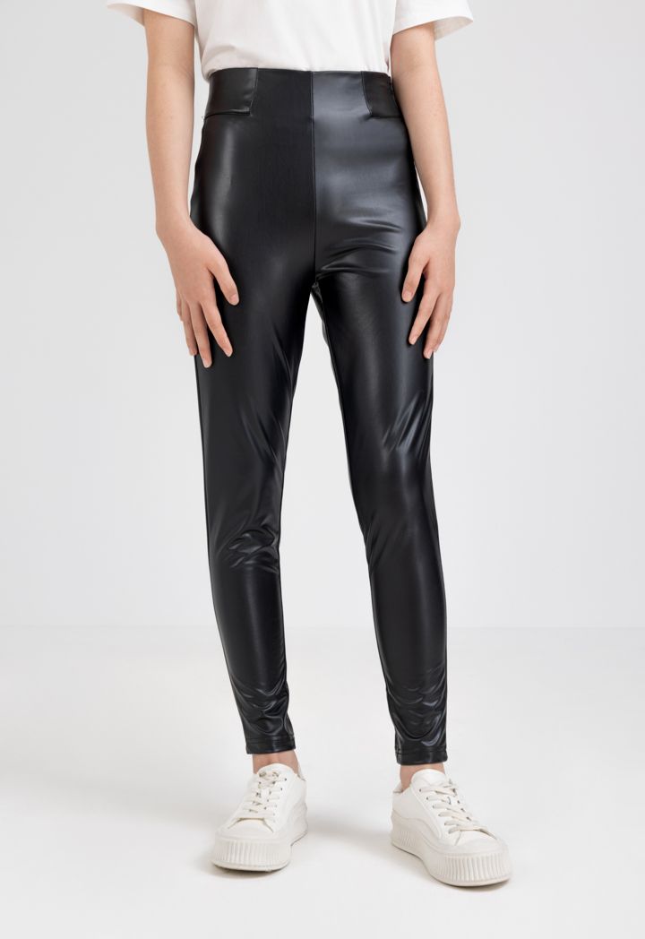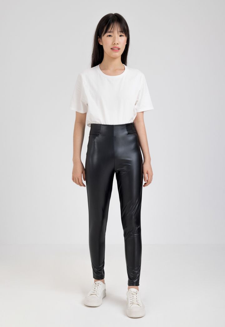A basic pair of solid PU Leather leggings that is the easiest to pair with any top or shirt.