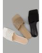 Solid PU Leather Open Toe Flats