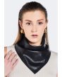 This scarf is sure to keep the cold away thanks to its PU Leather design and button closure.