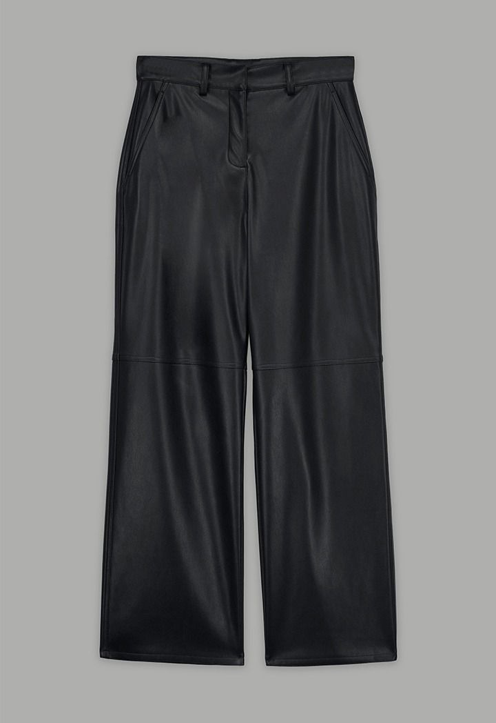 Design: Solid, PU Leather, Side Pockets, Back Pockets, Belt Loop, High Waist, Straight Cut