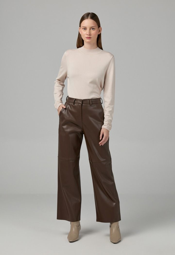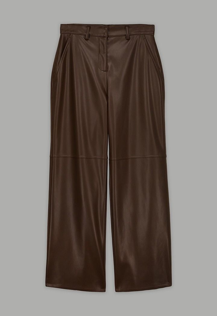 Design: Solid, PU Leather, Side Pockets, Back Pockets, Belt Loop, High Waist, Straight Cut