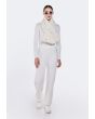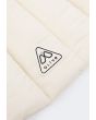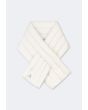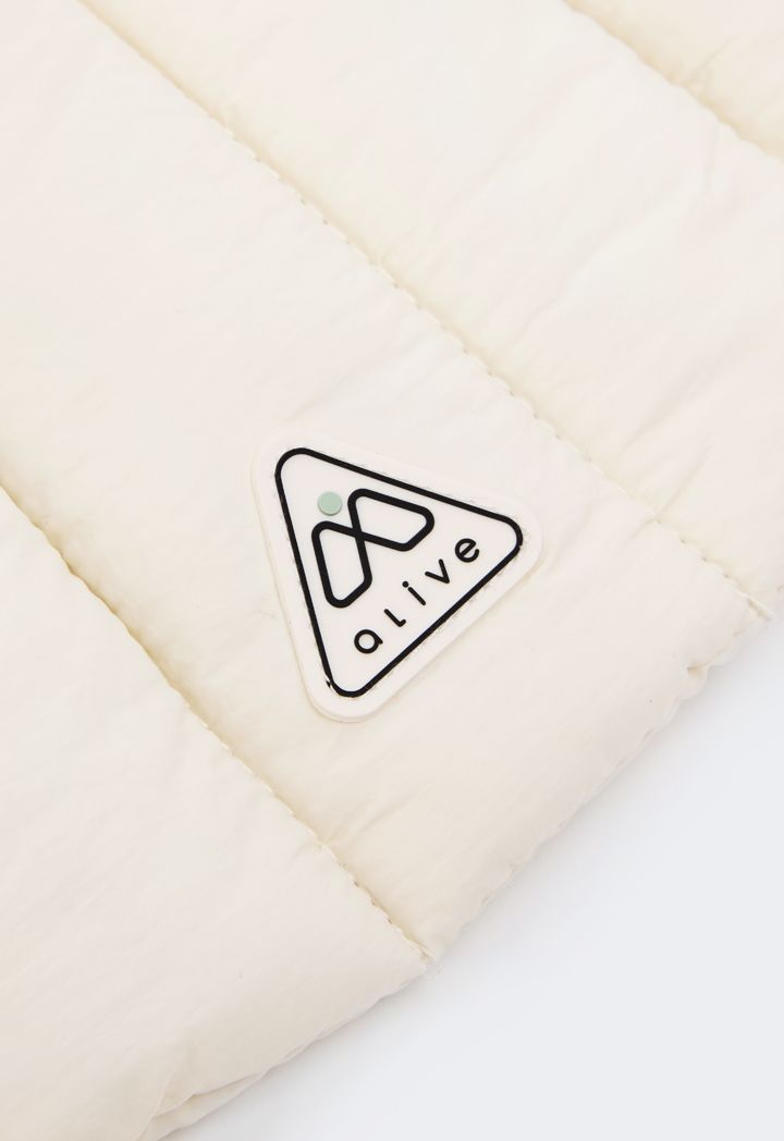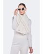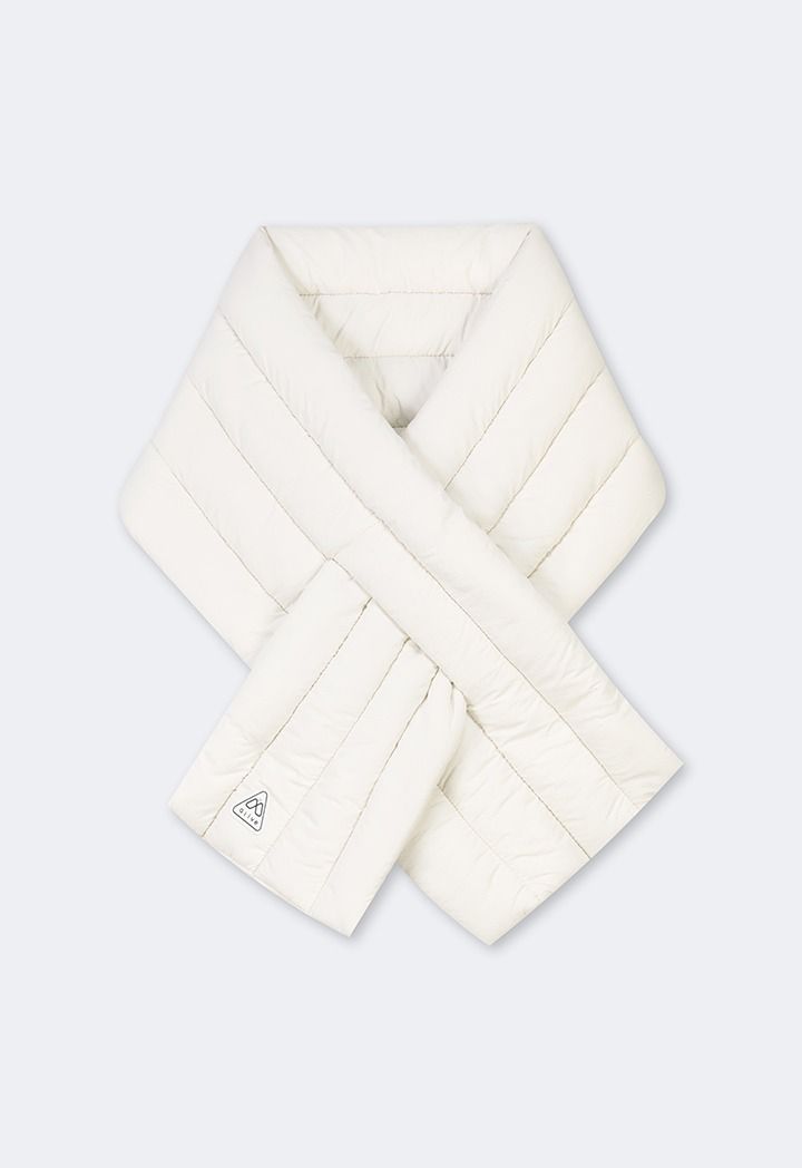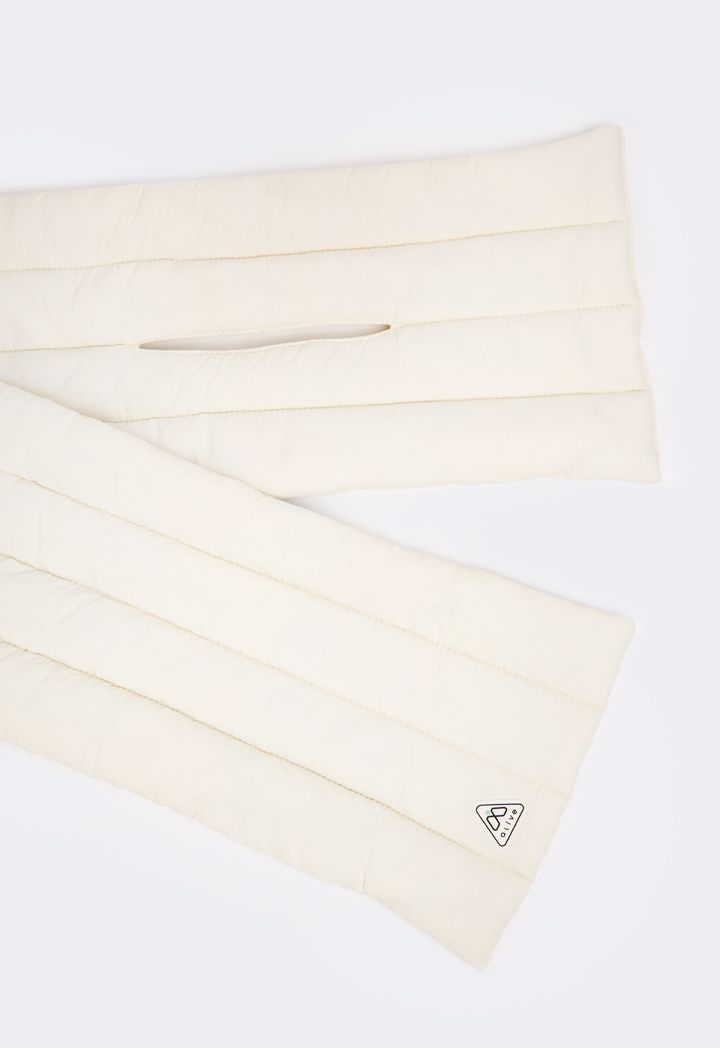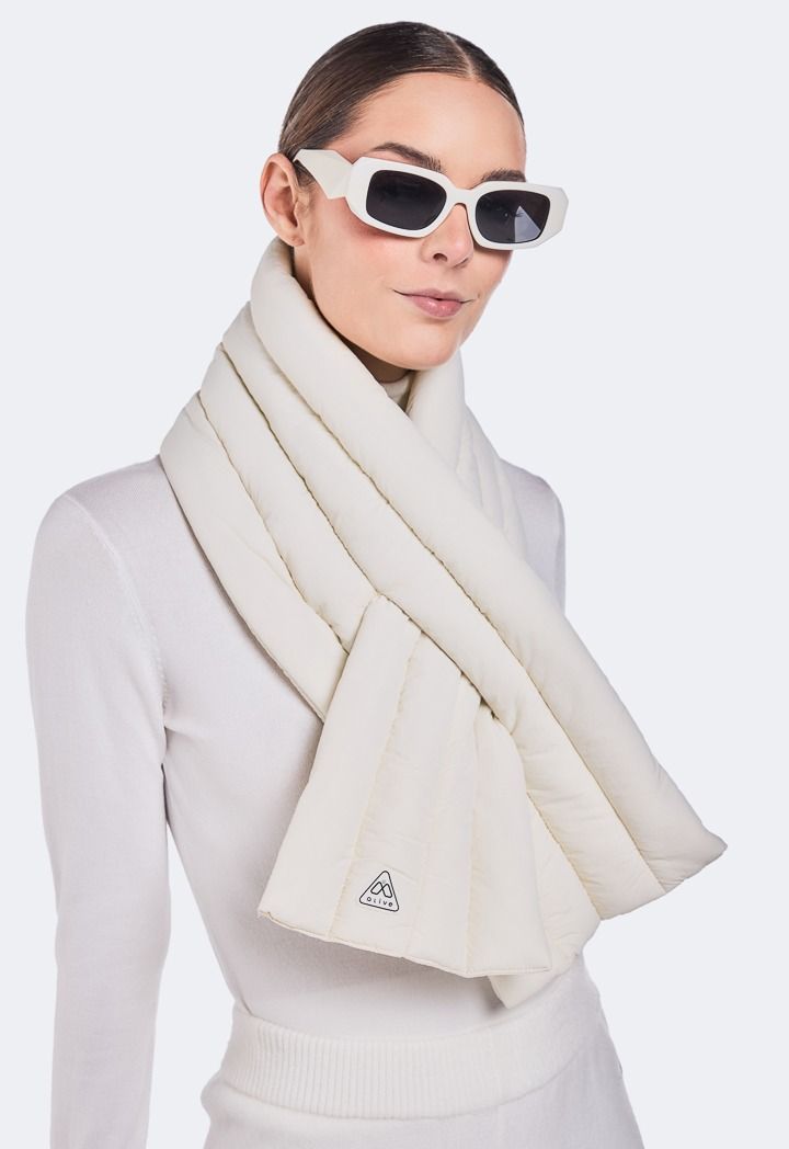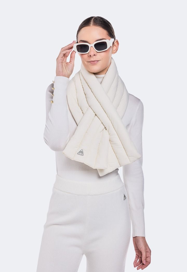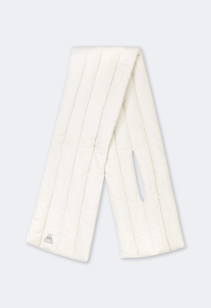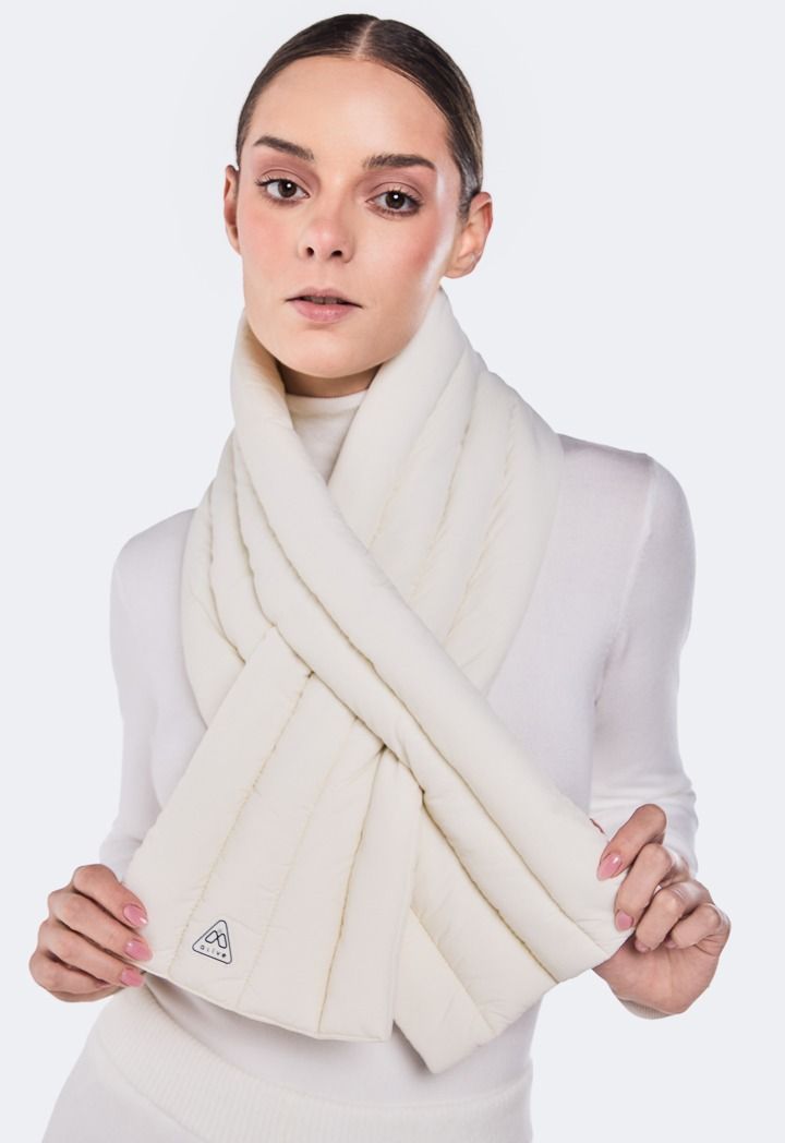 An out of the ordinary design of a shoulder scarf that features a solid puff design with an opening for closure.