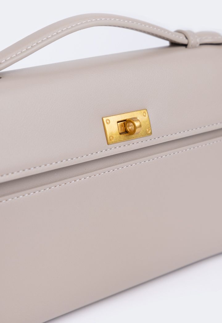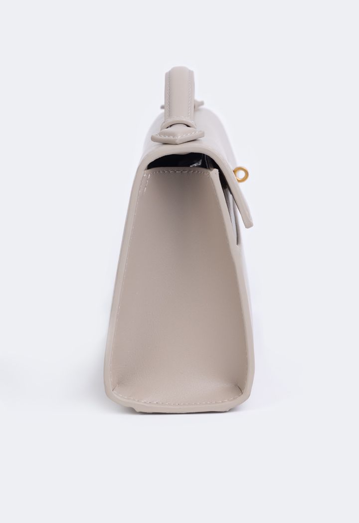 A luxurious choice for a handbag, featuring a solid PU leather design and a metallic lock in the center.