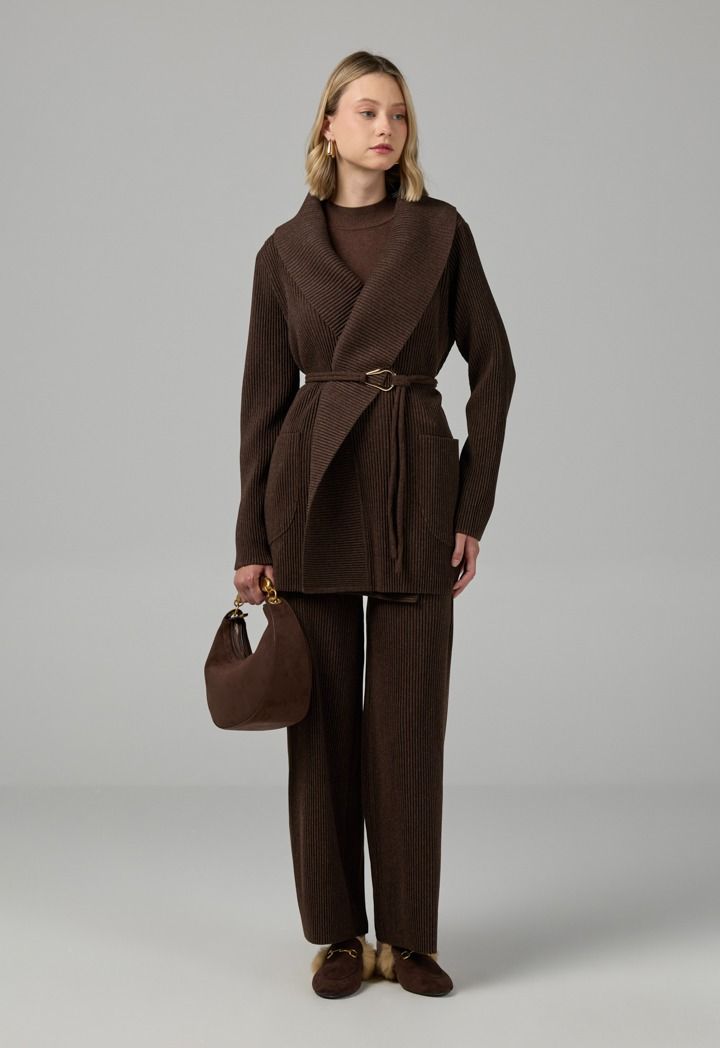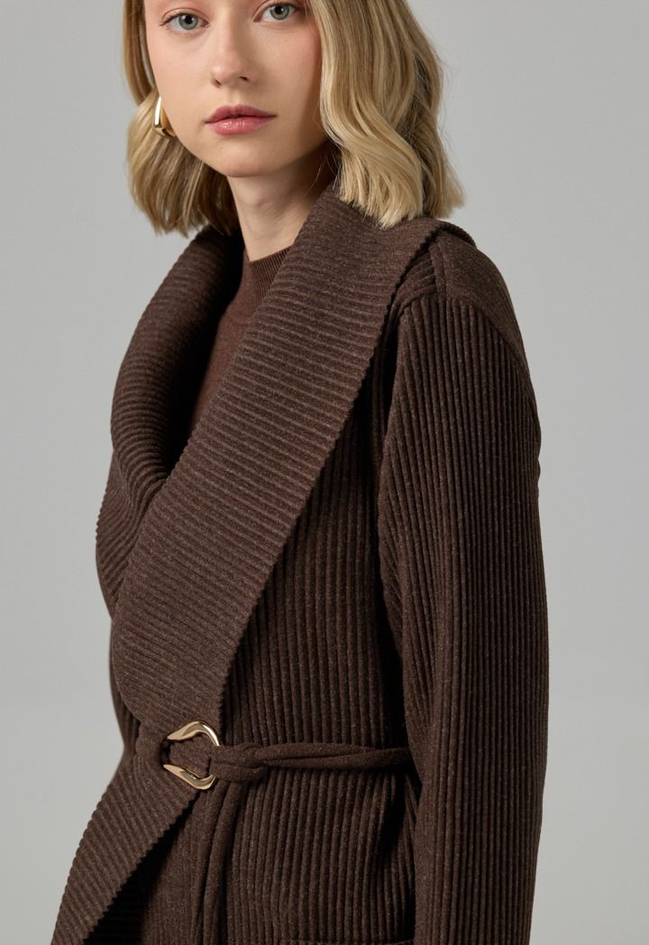 Design: Solid, Knitted, Ribbed, Belted, Front Pockets
