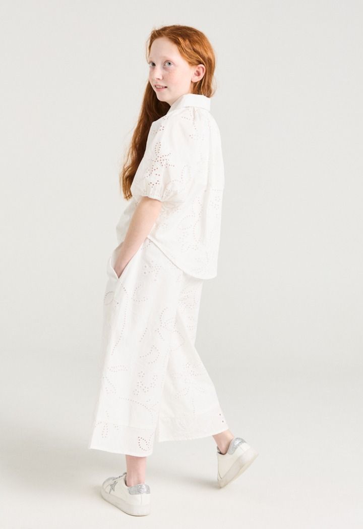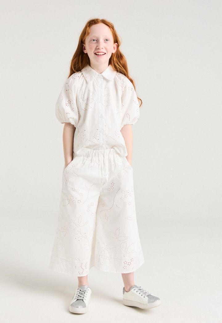 Style this short sleeved schiffli shirt with its matching design pair of pants.