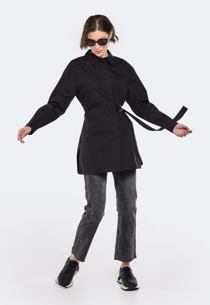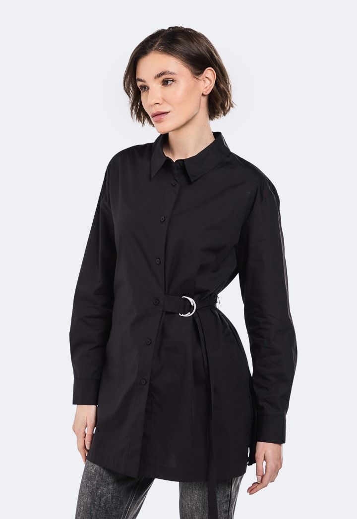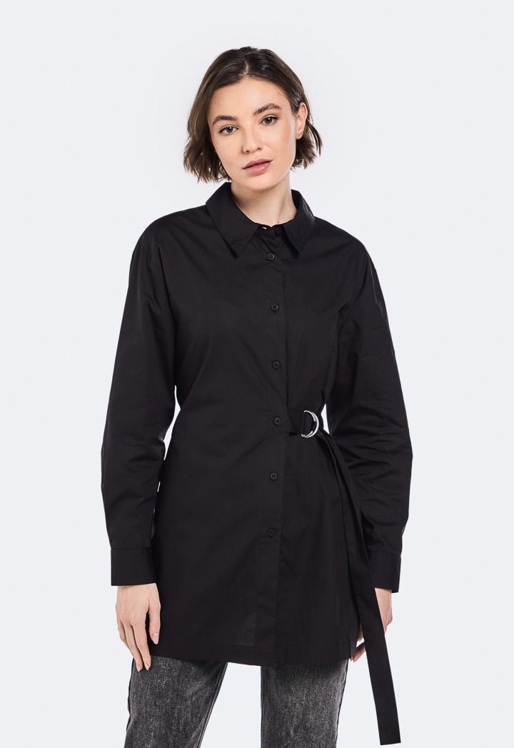 Solid Shirt with Attached Belt for Women | Riva Fashion