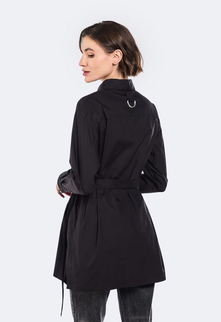 Design: Solid, Attached Belt, Side Slits