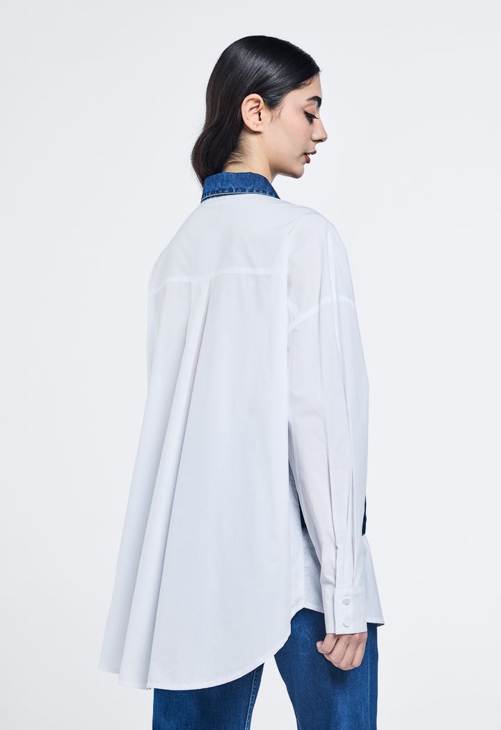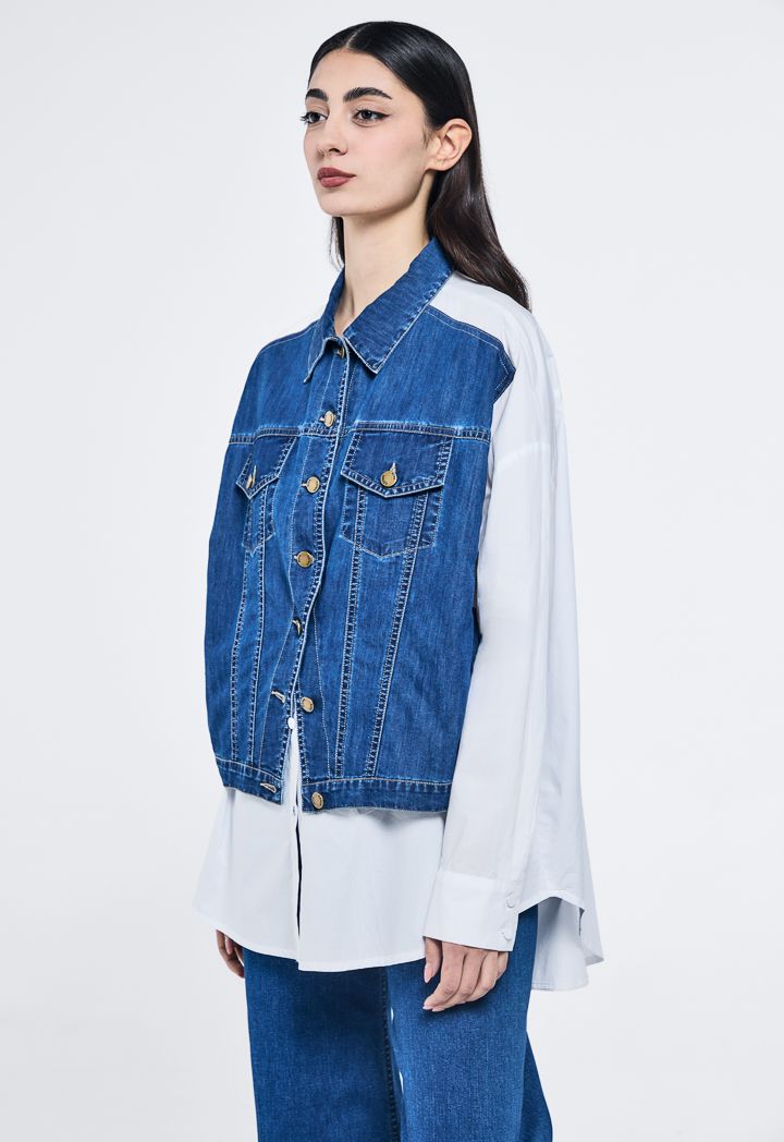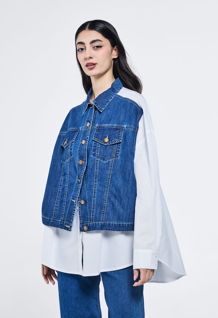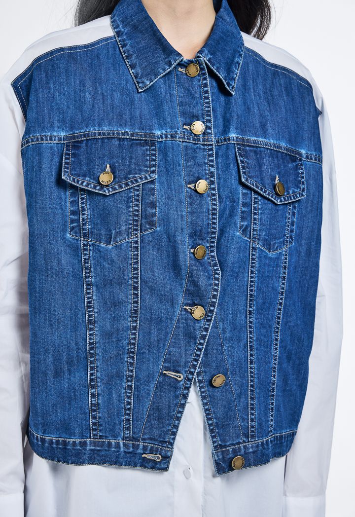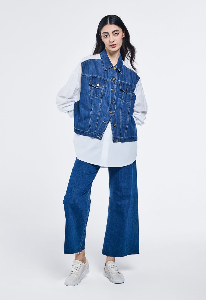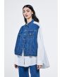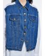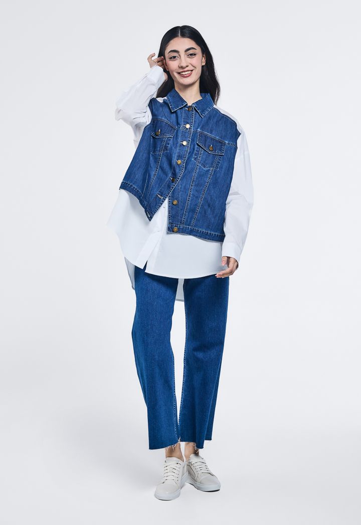 Design: Solid, Drop Shoulder, Attached Denim Vest, Loose Fit
