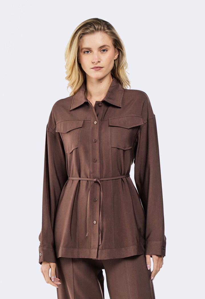Design: Faux Flap Pockets, Side Pockets, Attached Tie, Solid
