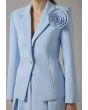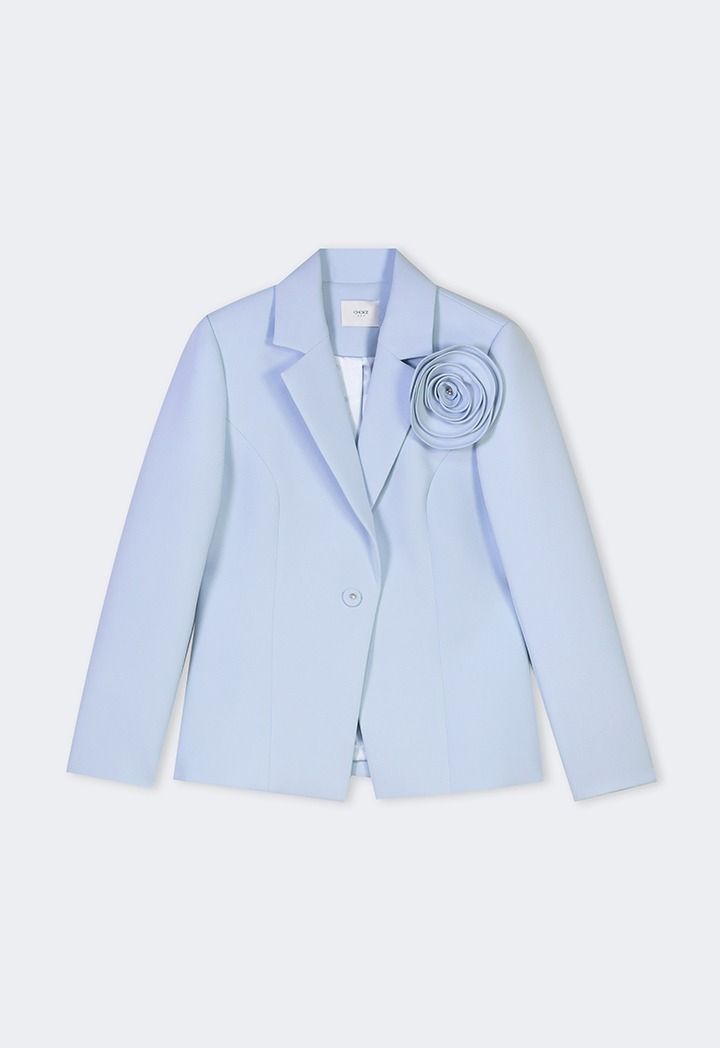 Design: Solid, Single Breasted, Attached Lining, 3D Flowers Patch, Back Slit