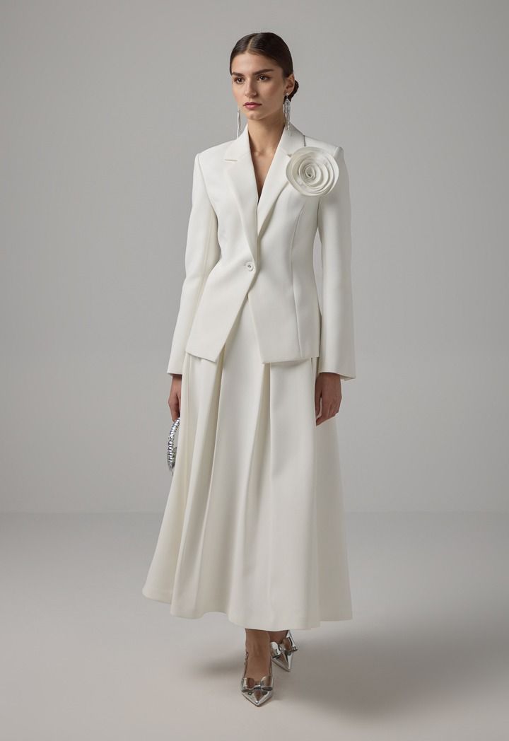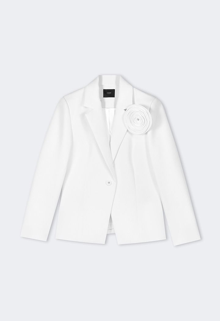 Design: Solid, Single Breasted, Attached Lining, 3D Flowers Patch, Back Slit
