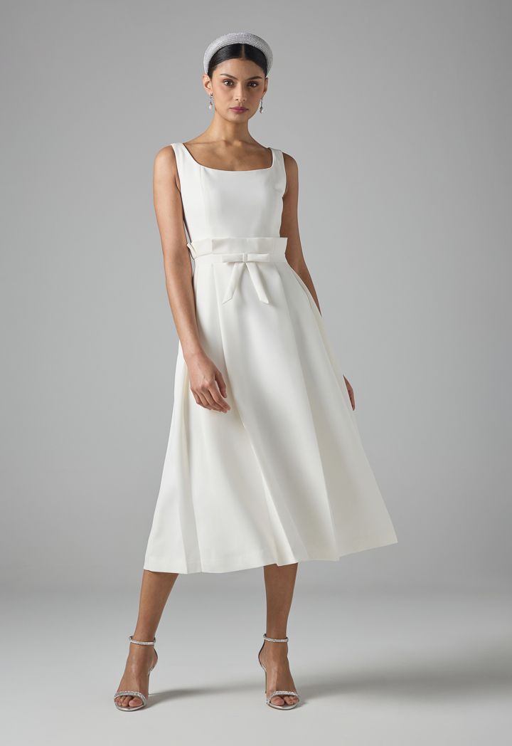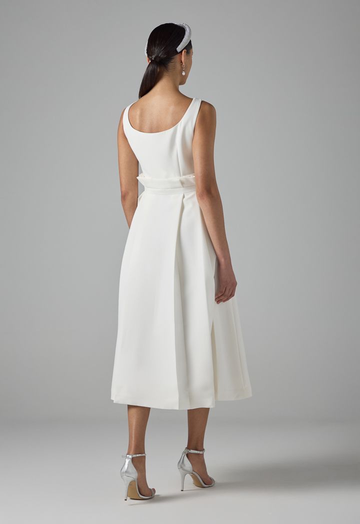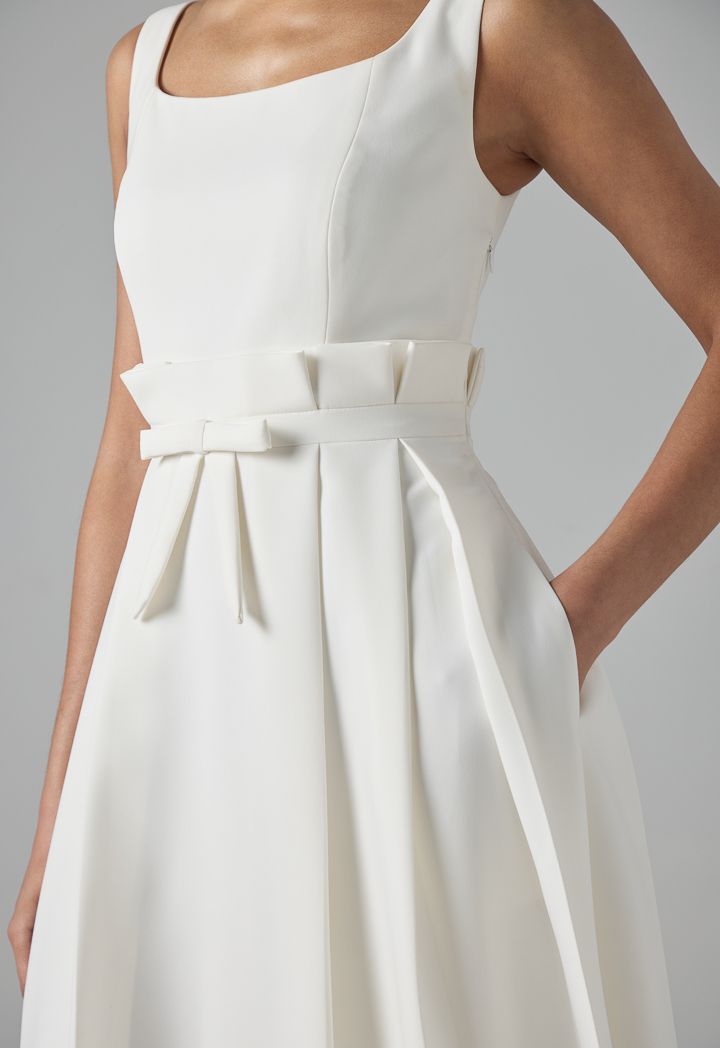 Solid Sleeveless Pleated Dress |