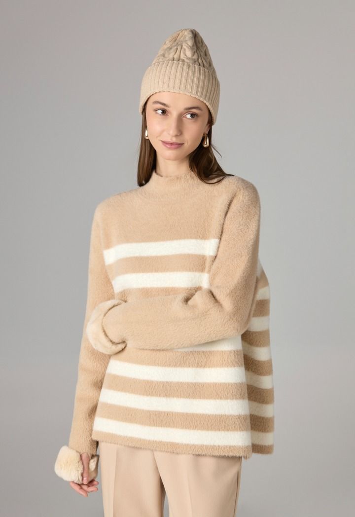 Keep your head warm and cozy with this knitted beanie.
