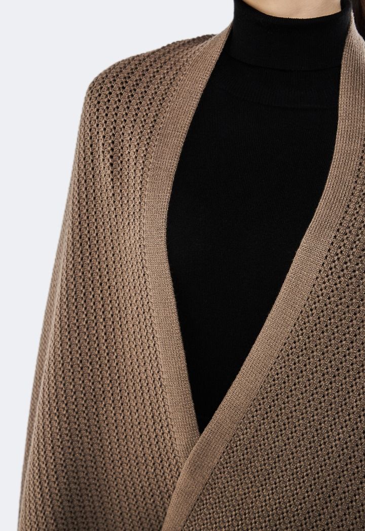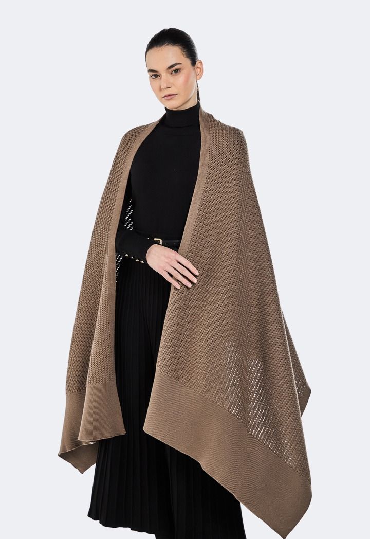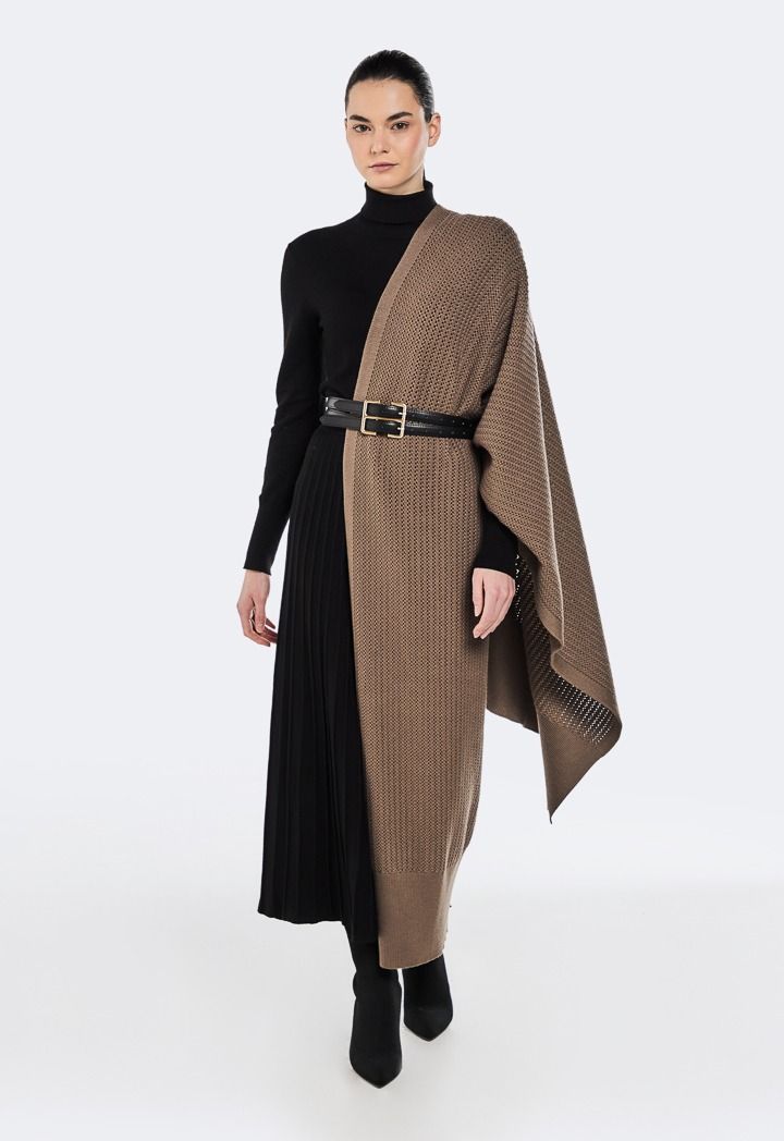 Style-out the cold with this knitted poncho, the perfect throw-on piece for casual winter days.
