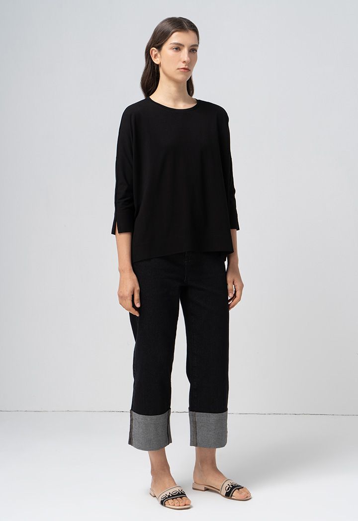 Design: Solid, Drop Shoulders, High-Low, Slits hem