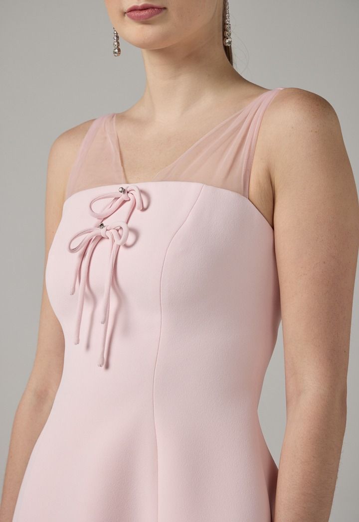 Design: Solid, Tulle, Bow Details, Crystal Embellished, Attached Lining