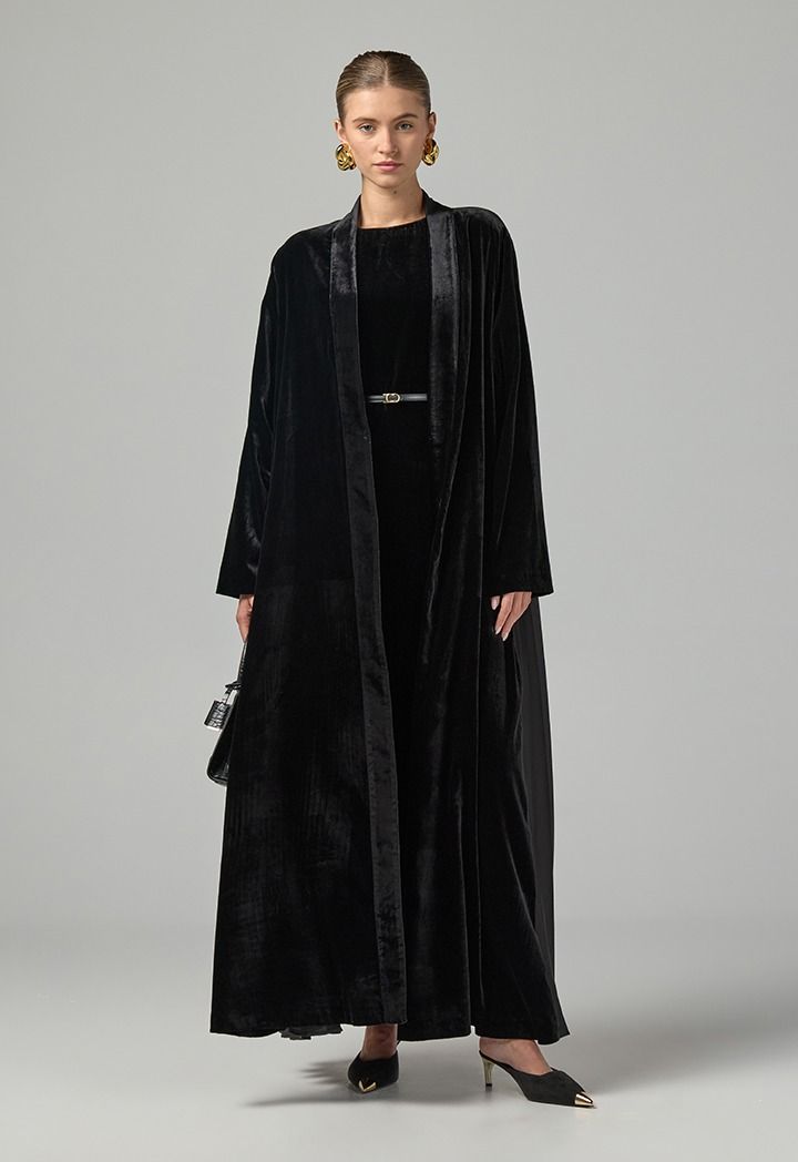 Solid Velvet Open Abaya |