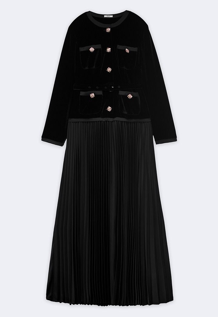 Refined charm with Solid Velvet Pleated Dress is where elegance meets allure.