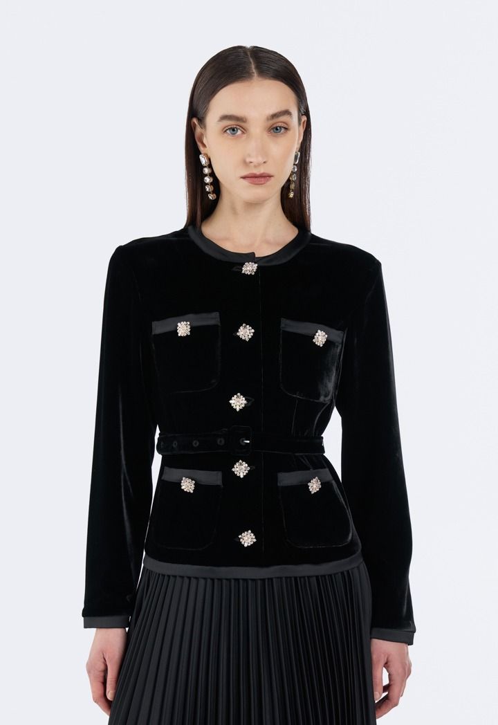 Design: Solid, Velvet, Pleated, Patch Pockets, Belted