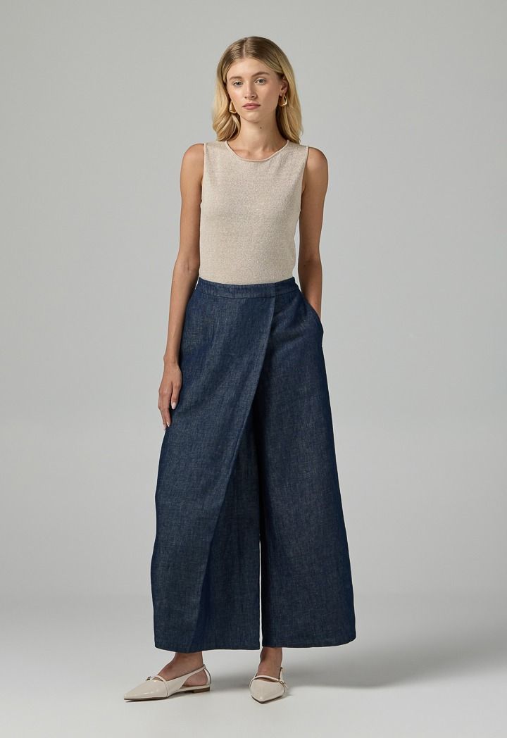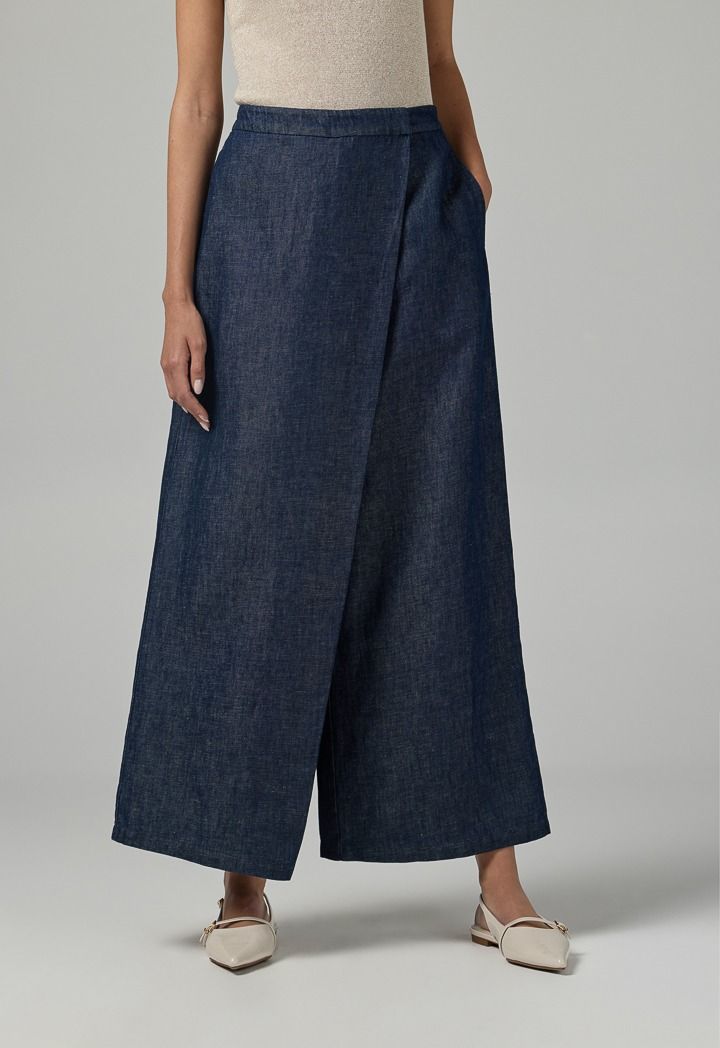 Design: Solid, Side Pockets, Wide Leg, Wrap, Elastic Back Waistband