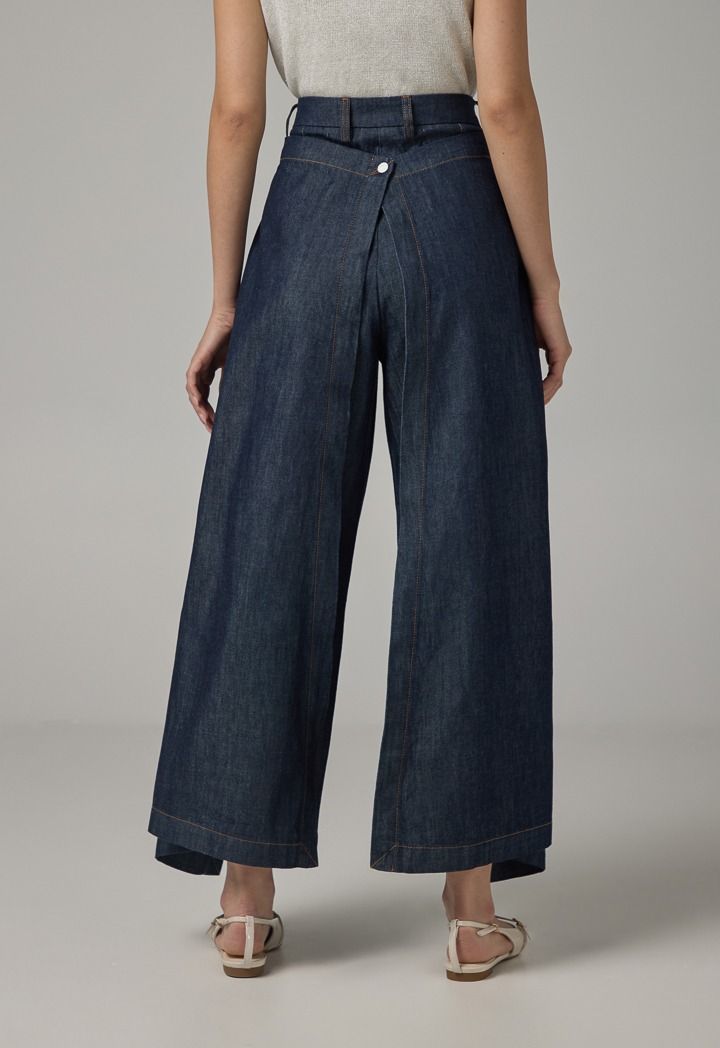 Solid Wide Leg Overlap Denim Trousers |