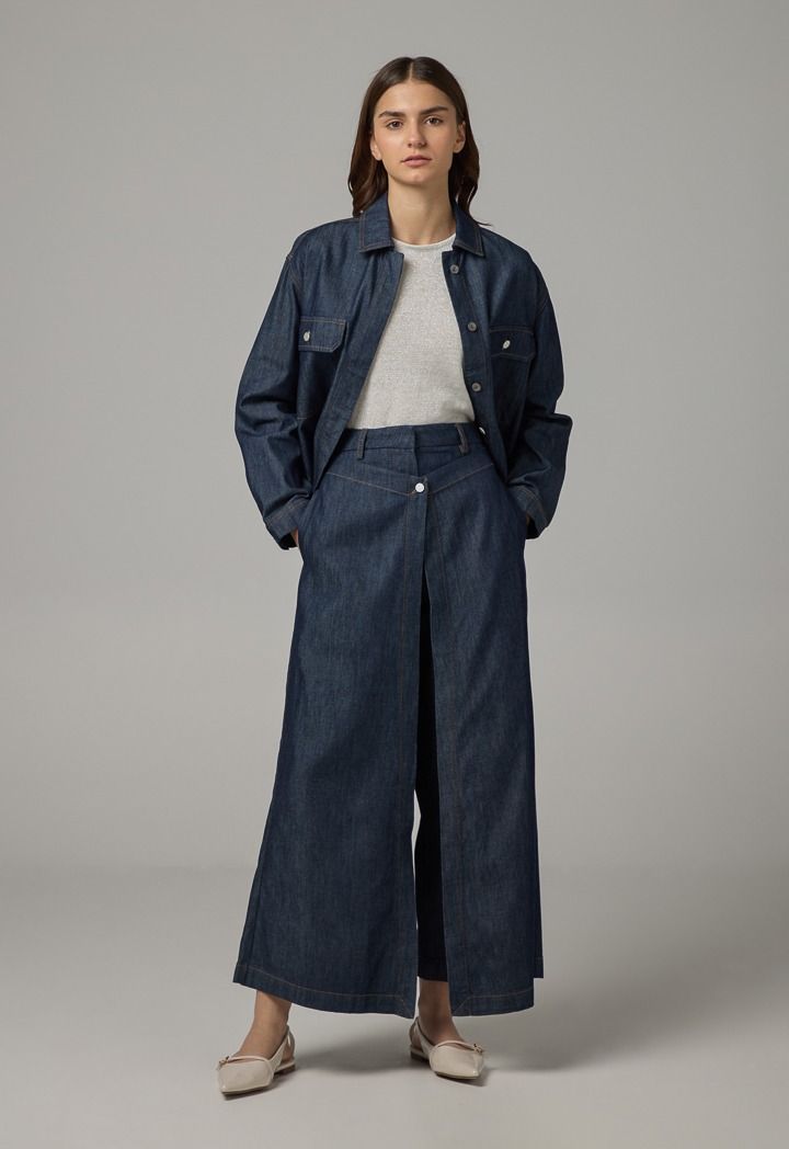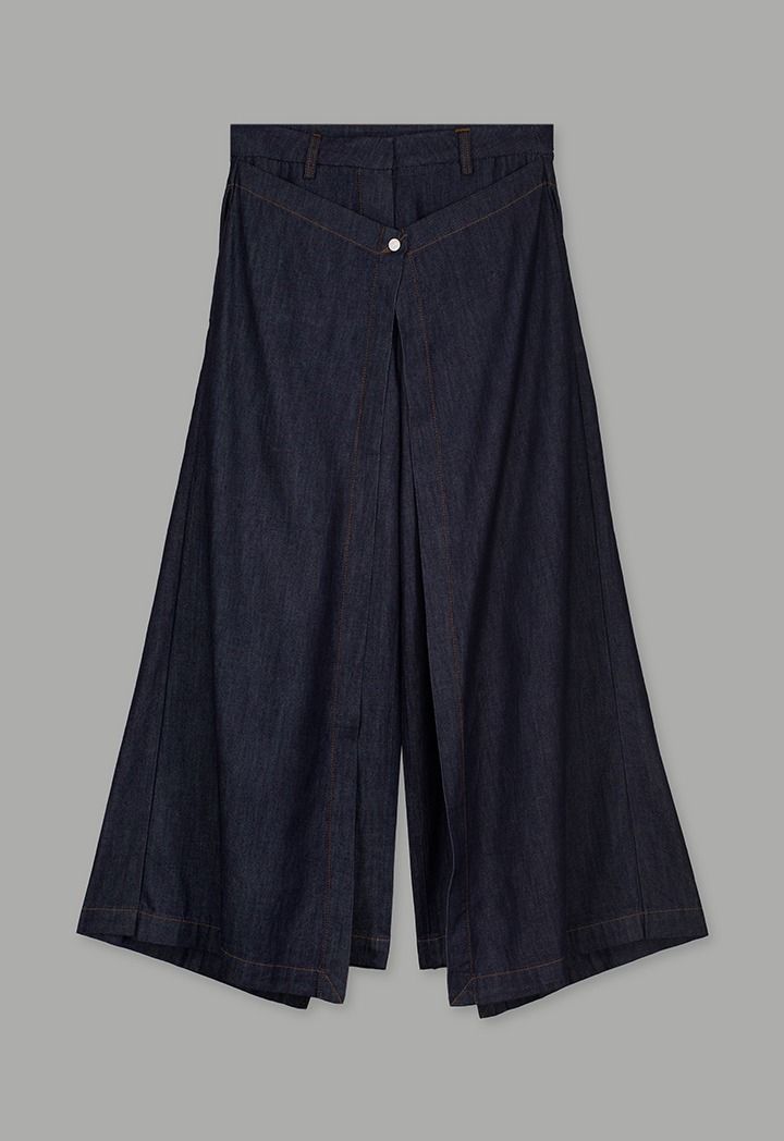 Design: Solid, Wide Leg, Pockets, Denim, Overlap