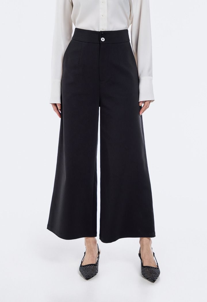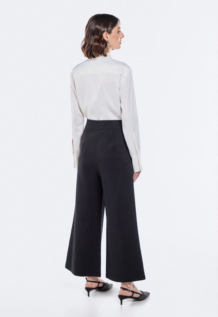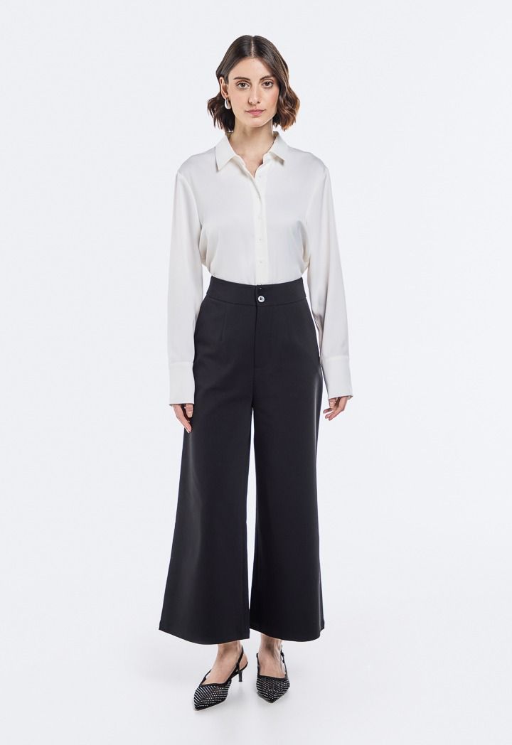 Women's Wide Leg Trouser with Button Waistband | Riva Fashion