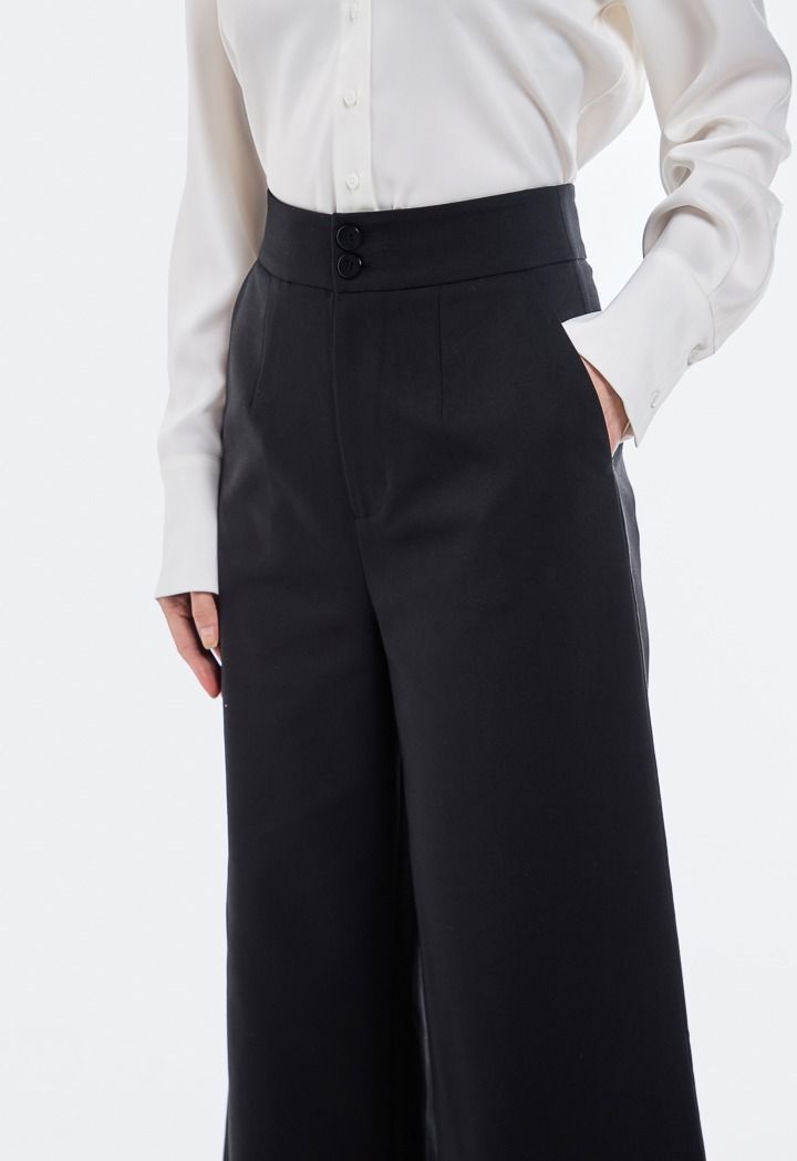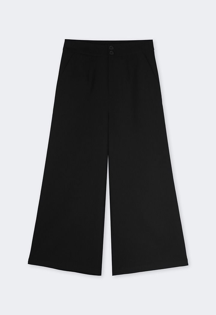 Solid Wide Leg Trouser With Button Waistband