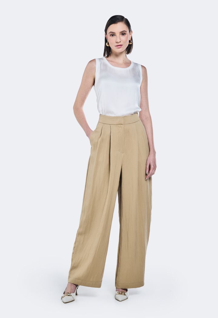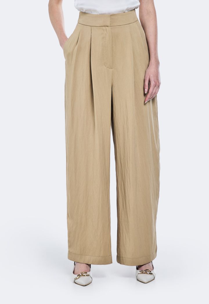 Design: Solid, Wide Leg, High Waist, Side Pockets, Straight Cut