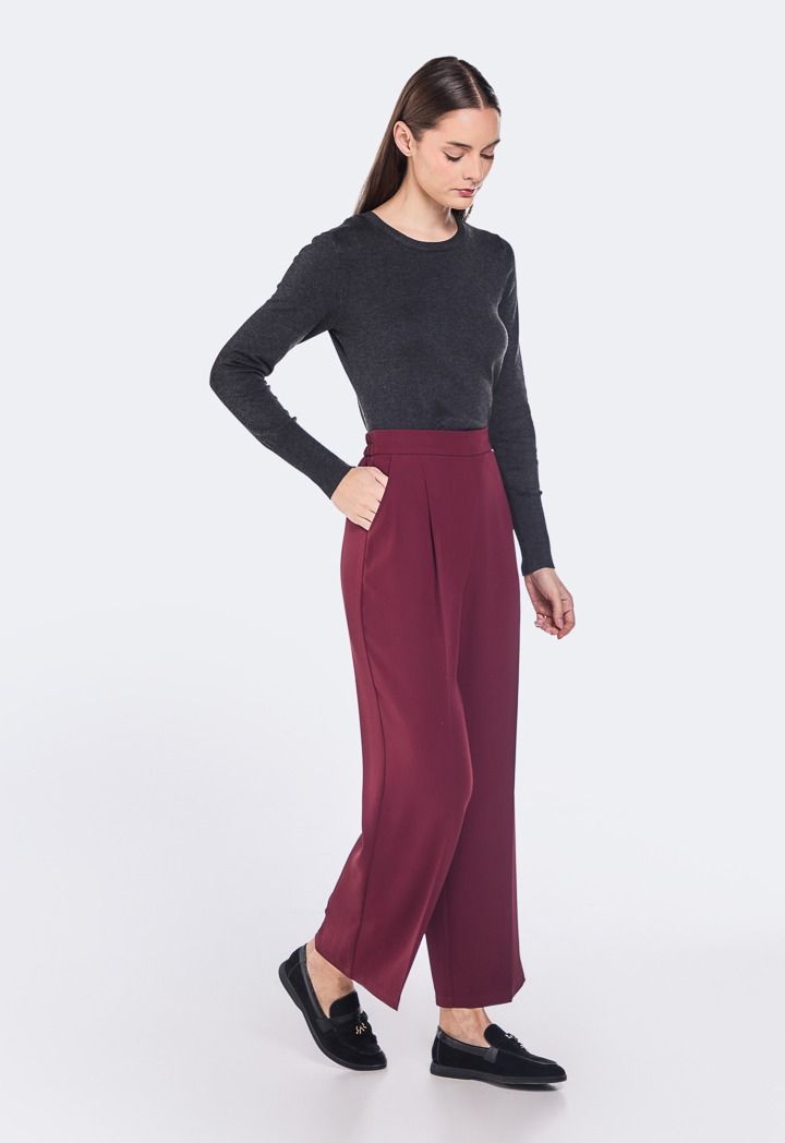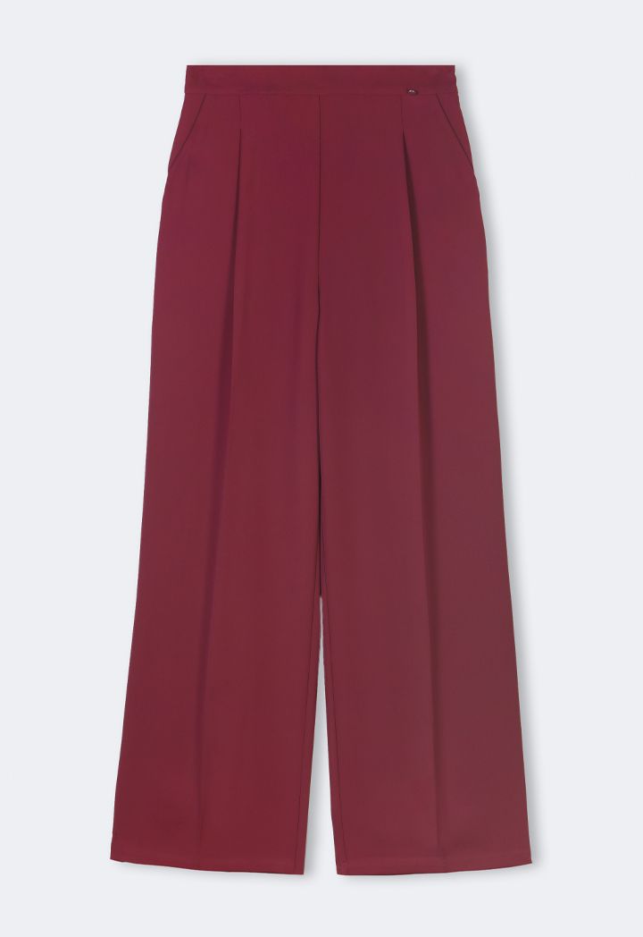 Design: Solid, Wide Leg, High Waist, Side Pockets, Straight Cut, Pleated Waist Details