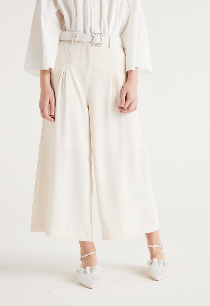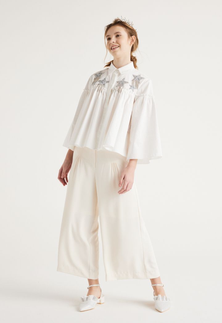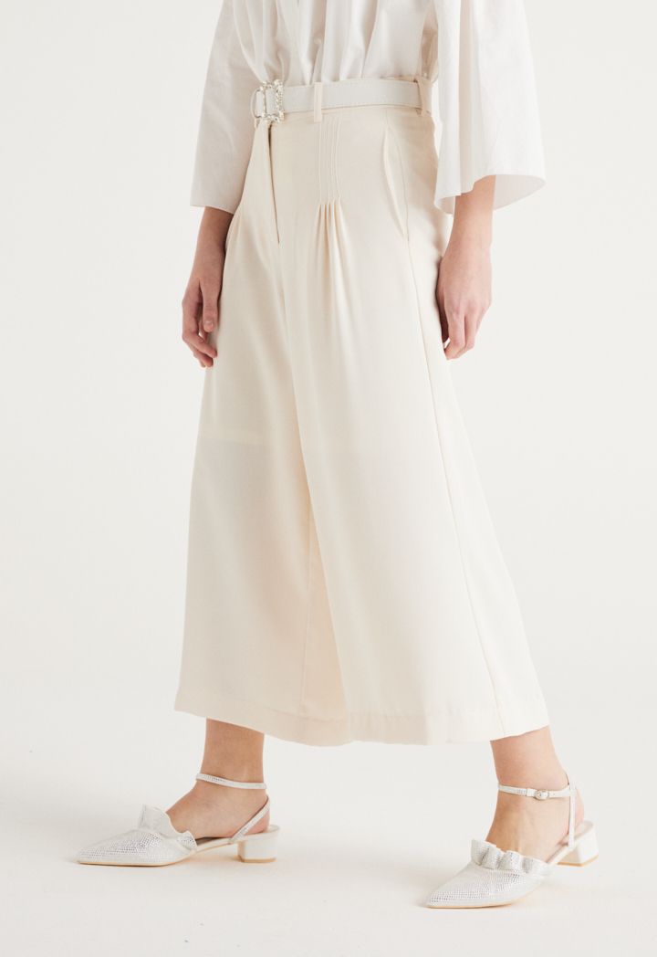Refreshing charm comes to your girl's casual closet with this Ankle Length Trouser. It features Wide leg and Side Pockets.