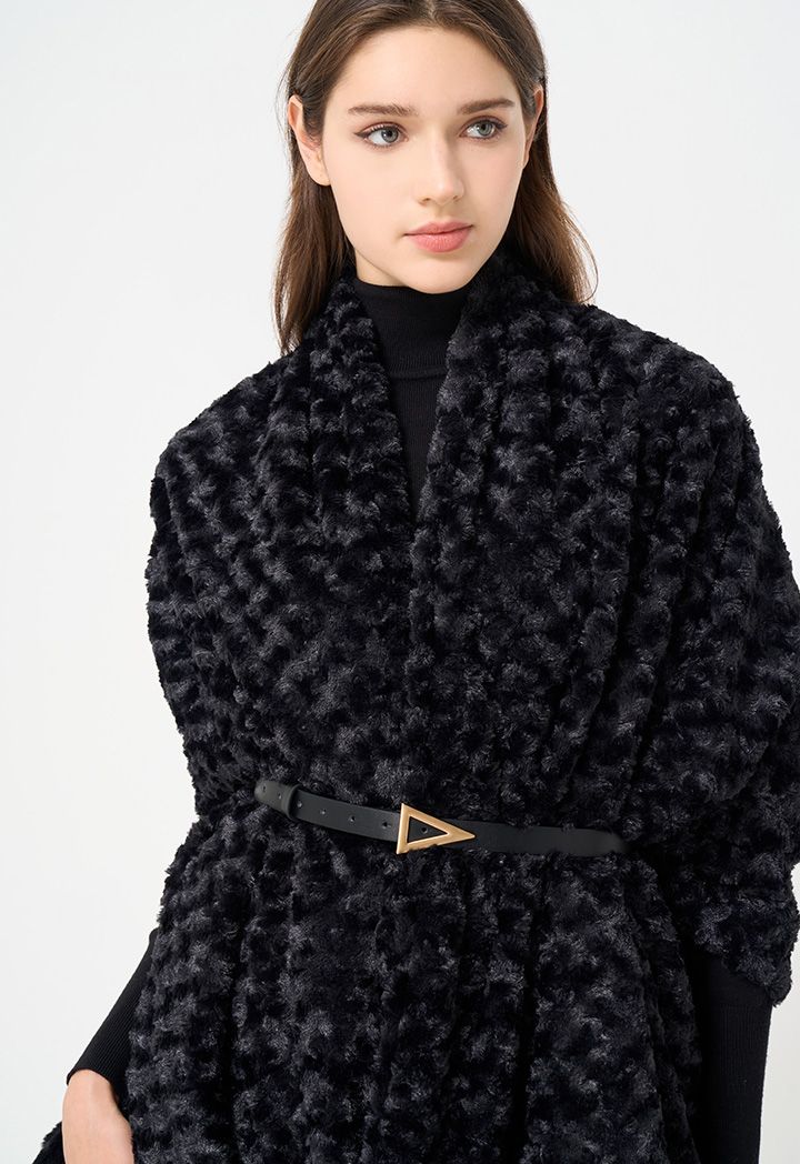 Expand your collection of winter ponchos with this solid and classic poncho.