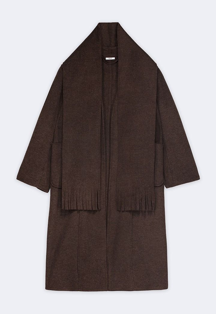 A classic coat, featuring a solid wool design and a matching design scarf.