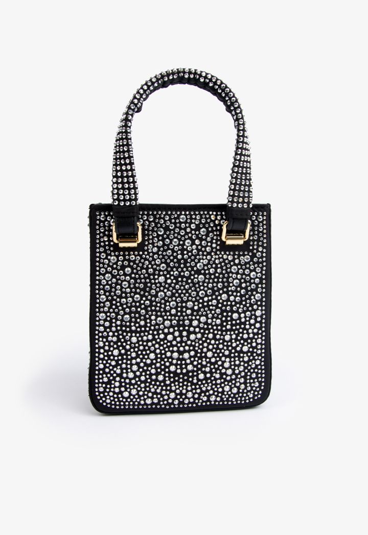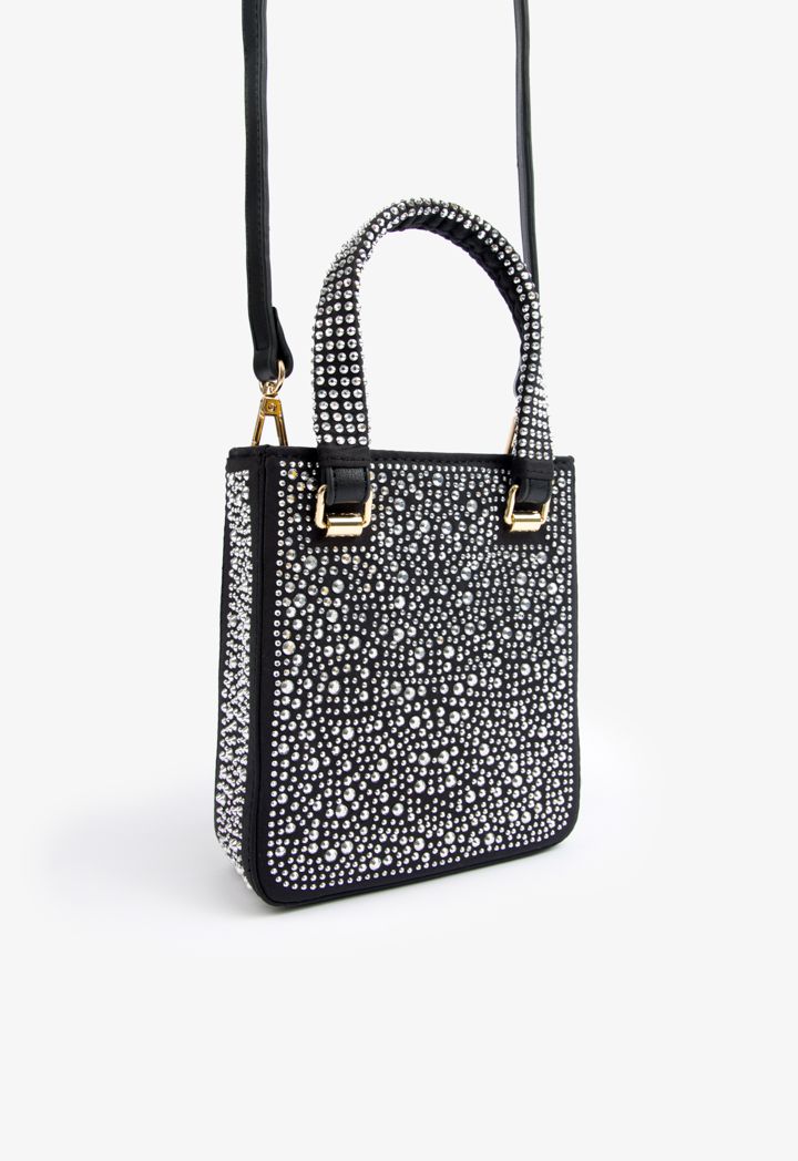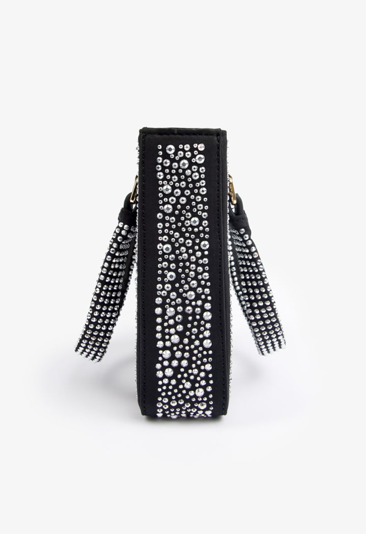 A dazzling construct of a crossbody bag, featuring a crystal embellished design that is sure to be the centerpiece of any attire you put on no matter the occasion.