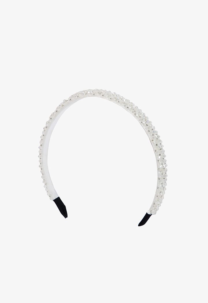 Add a dazzling sparkle to your hairstyle wearing this sparkling and light reflecting hair accessory with a final touch of a comfortable band.